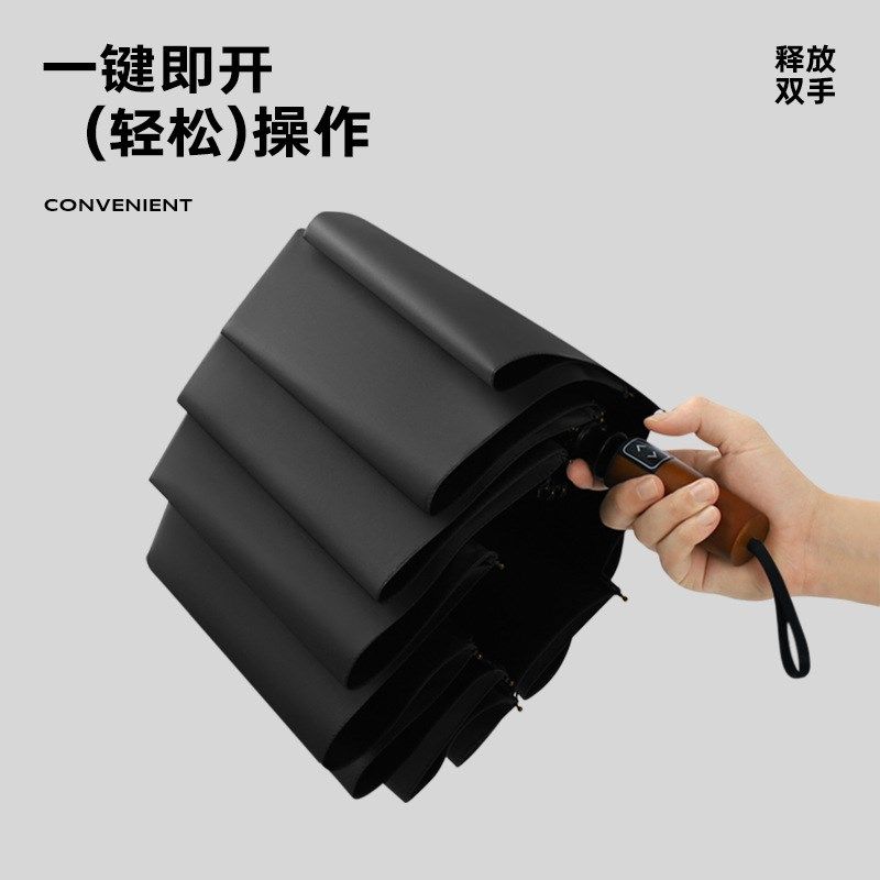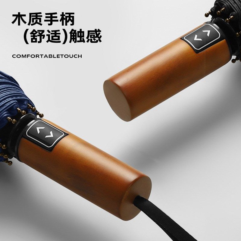 10骨全自动木柄刻字送礼年会礼品雨伞定制可印logo图案彩印折叠伞