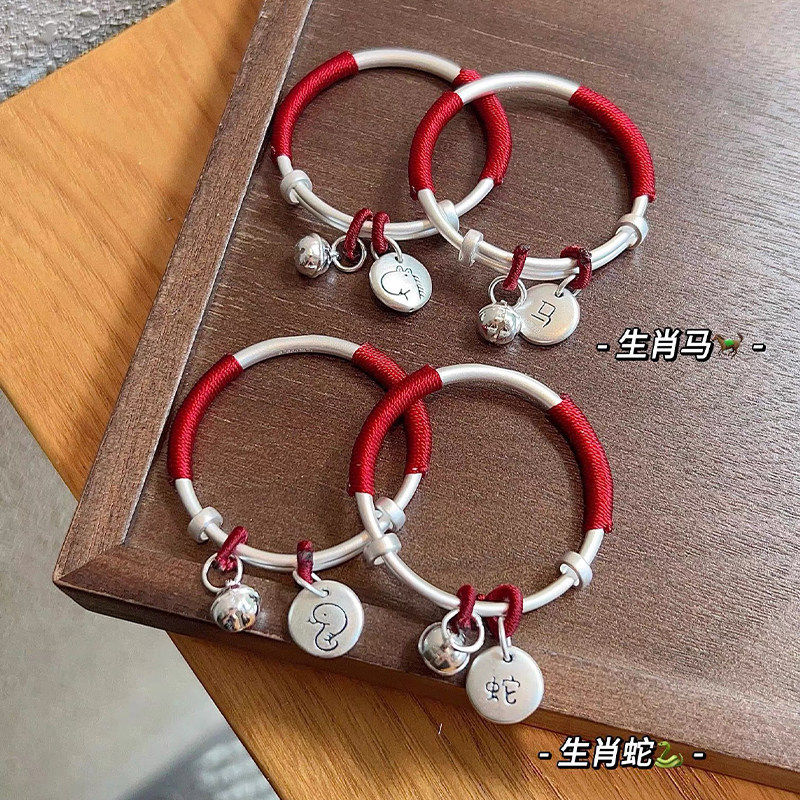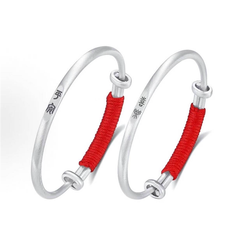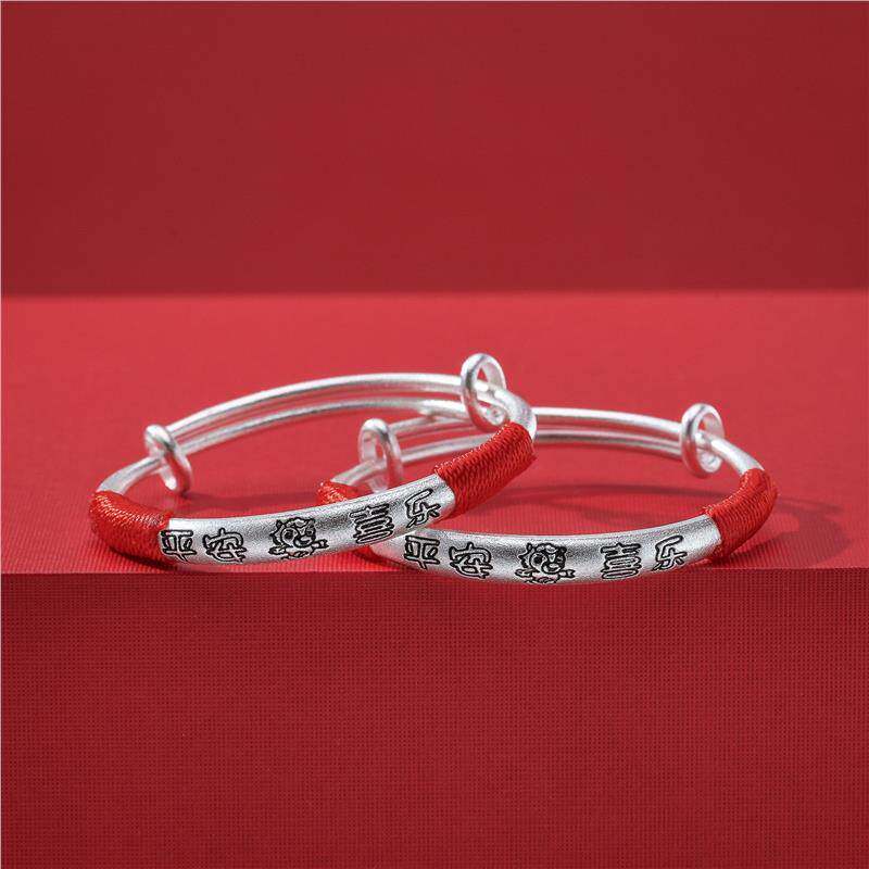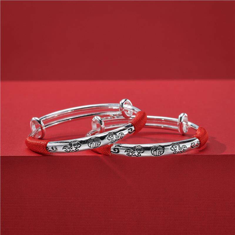 马年宝宝纯银手镯999足银一对实心镯子送婴儿童满月周岁生日礼物