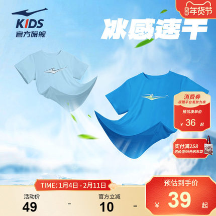 鸿星尔克童装男童短袖T恤夏季儿童速干衣女童冰感中大童运动上衣
