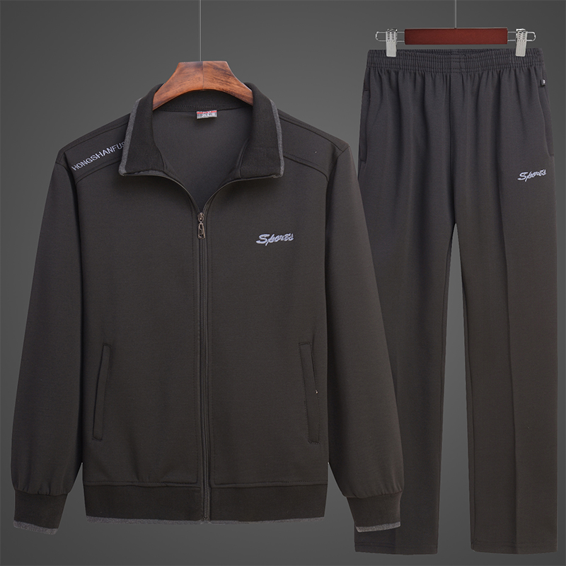 两件套中老年男士运动套装春秋爸爸运动服装外套中年男装上衣老人