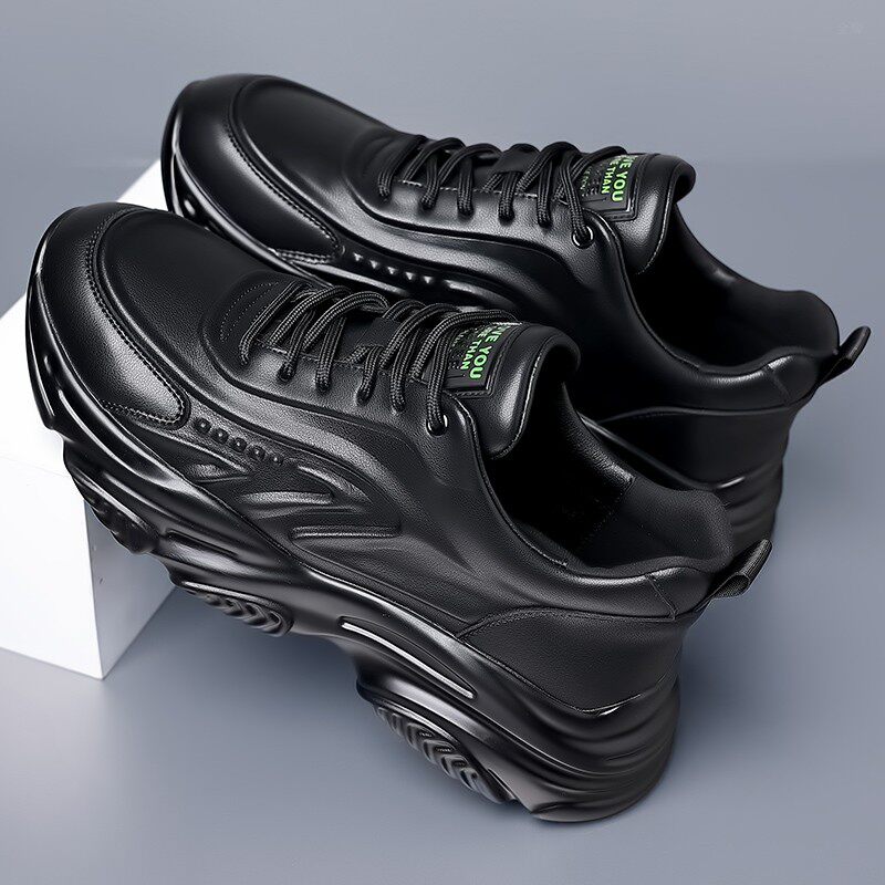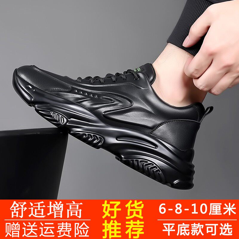 牛皮内增高10cm8cm6cm真皮老爹鞋男运动黑色百搭休闲鞋隐形增高鞋
