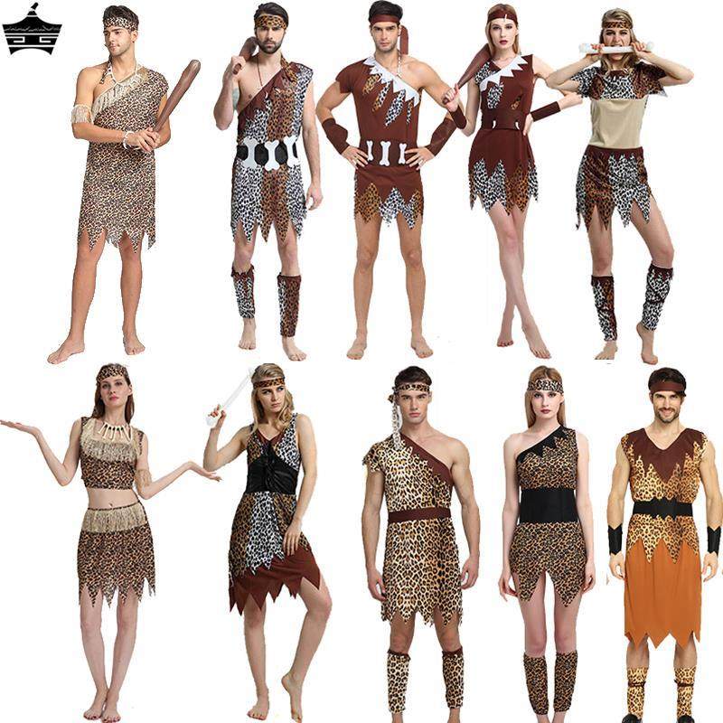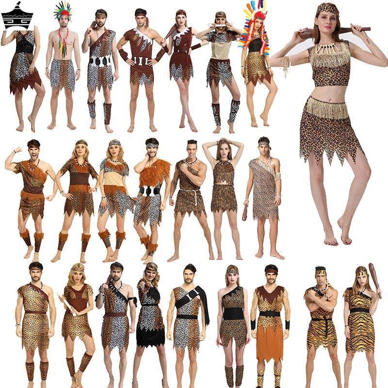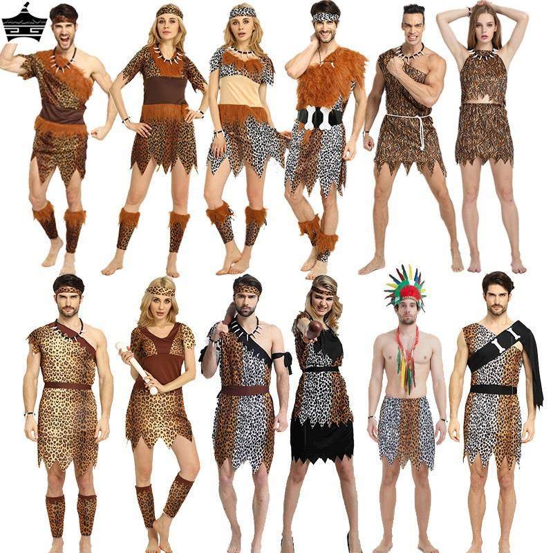 万圣节服装cos演出衣服成人男女土著原始人印第安豹纹野人服装