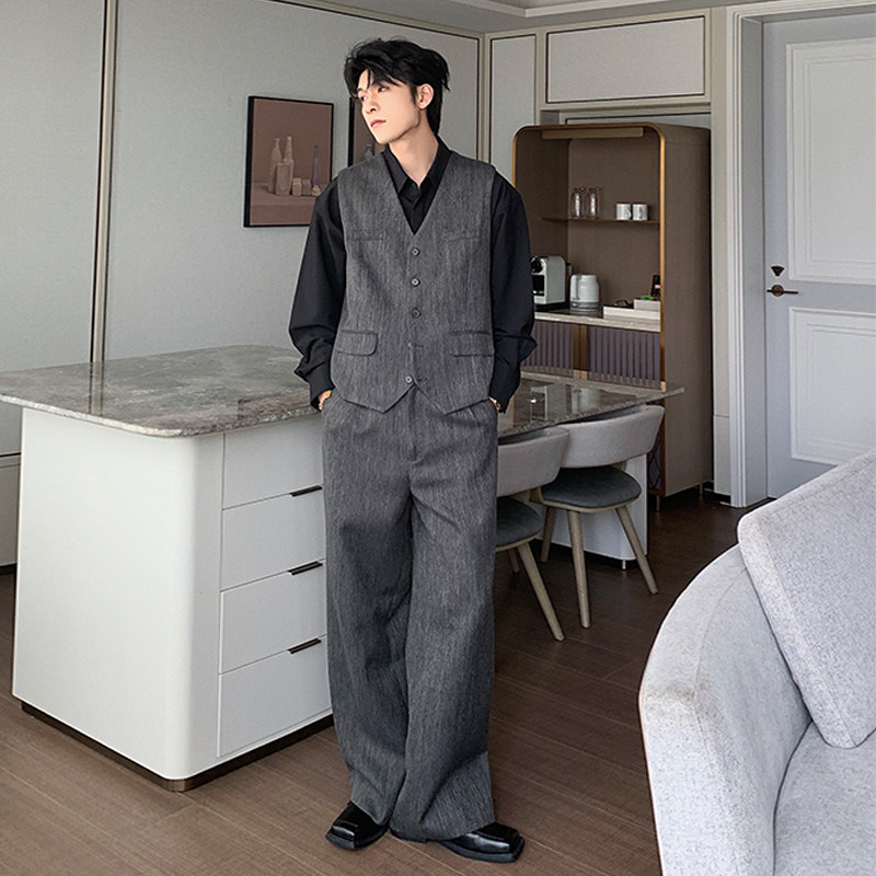 Hualun中范cultum绅士男装灰色西装套装三件套搭配老钱风痞帅西服