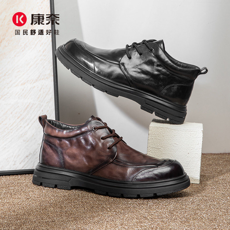 康奈男鞋2025冬季新款商务休闲皮鞋男百搭加绒高帮男士英伦风短靴