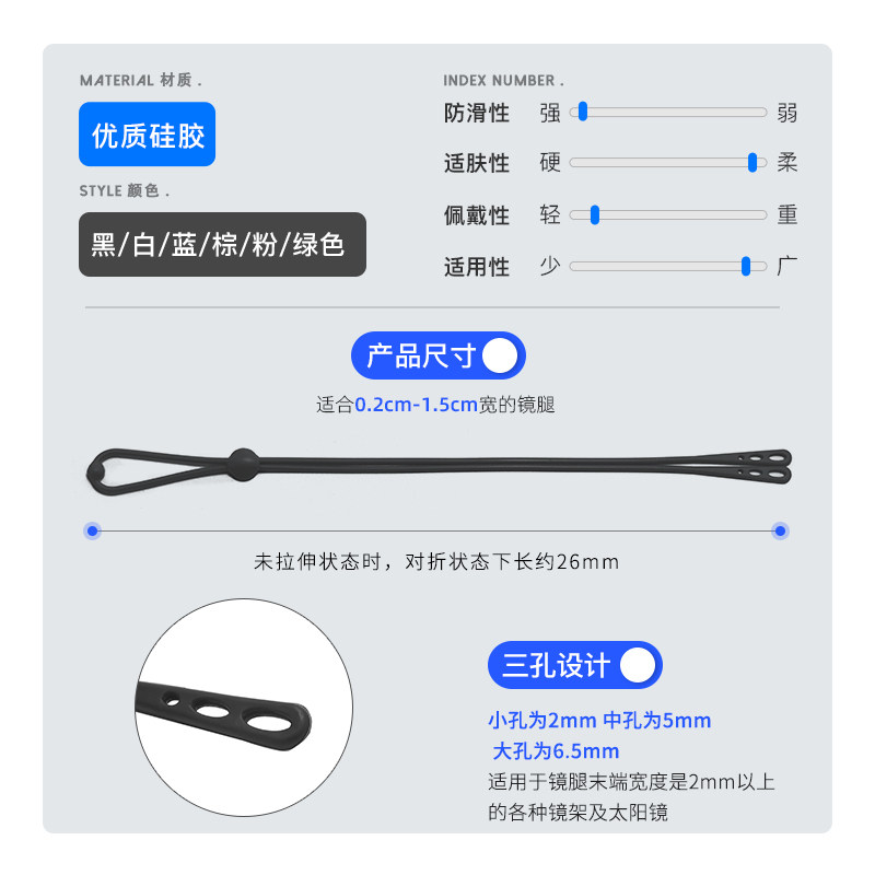 三孔运动眼镜防脱落防滑绳固定打球腿脚套防掉绑带耳勾托儿童挂绳