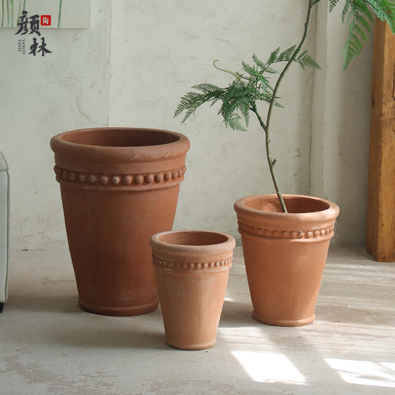 简约手工粗陶盆ins风复古做旧红陶花盆美式田园庭院阳台装饰透气