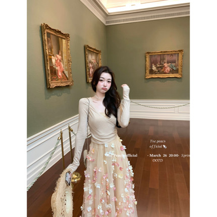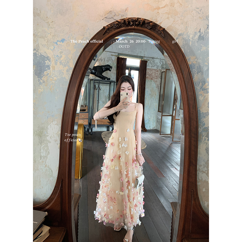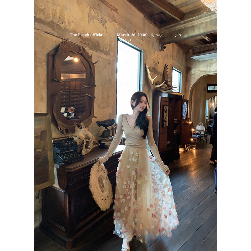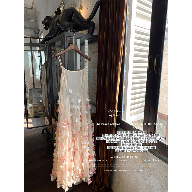 thepeachofficial【花间浮夏】法式纯欲羊毛上衣网纱吊带连衣裙女