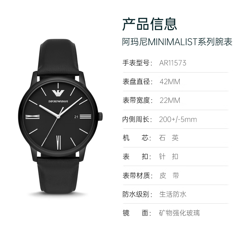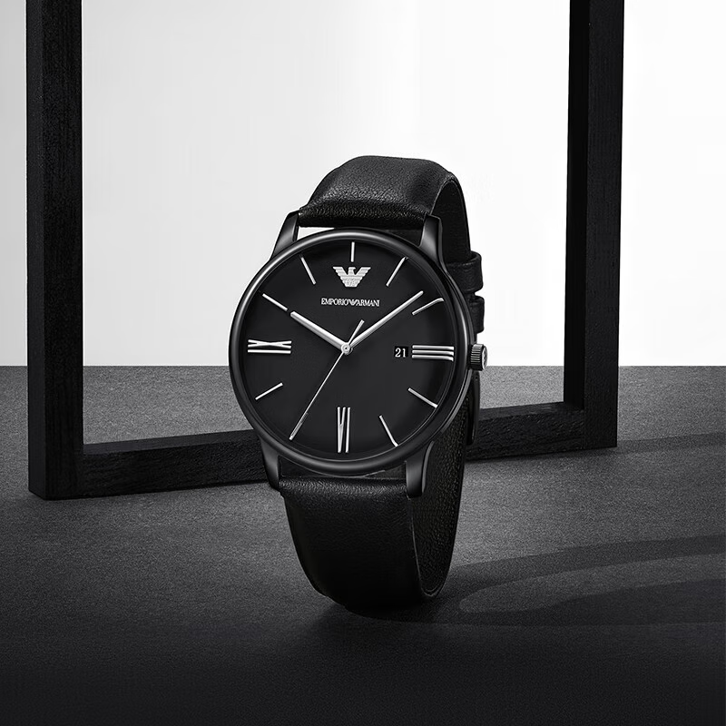 Armani阿玛尼黑武士黑色表盘皮带石英表生日礼物送男友AR11573
