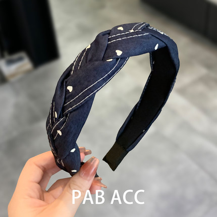 韩国高端牛仔交叉麻花爱心头箍日常百搭通勤藏蓝色洗脸压发箍发捆
