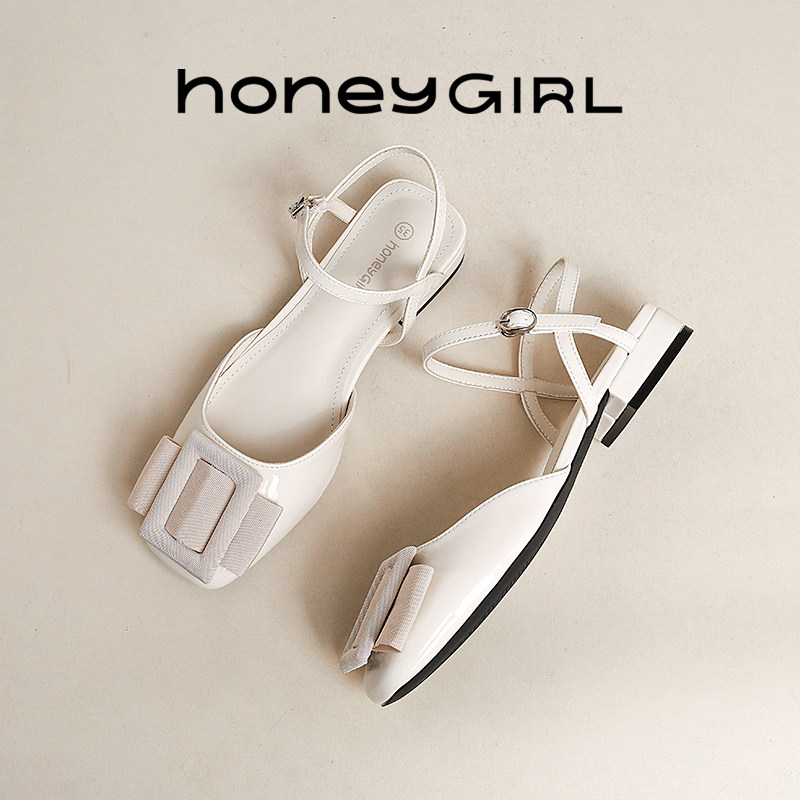 honeyGIRL一字带单鞋女夏季2025新款玛丽珍鞋女浅口低跟包头凉鞋