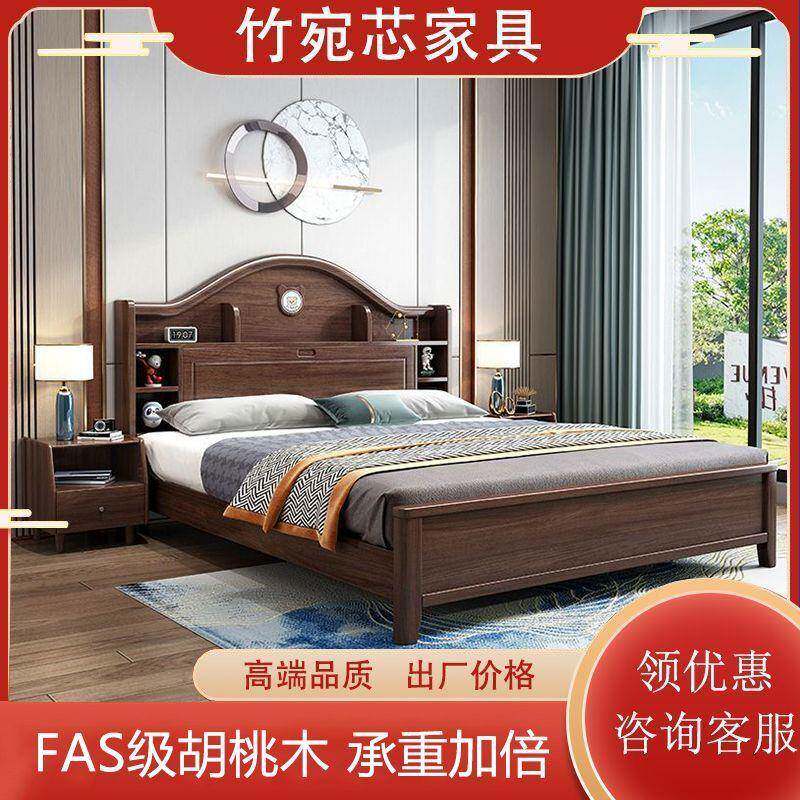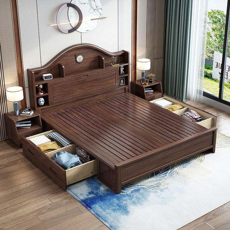 胡桃木实木床储物床中式单人床现代简约卧室成套家具小户型儿童床