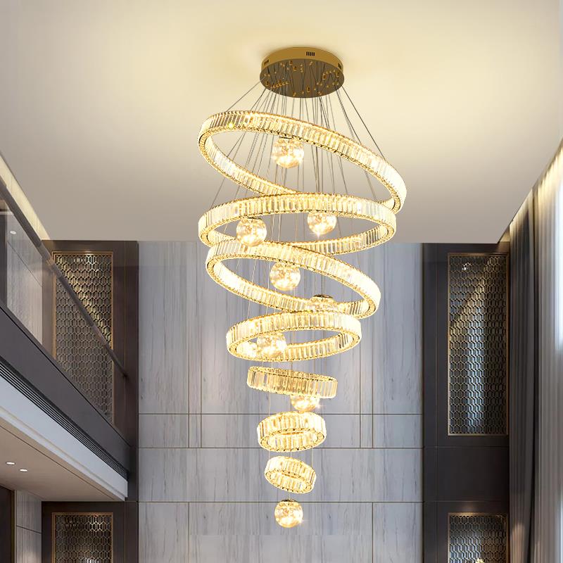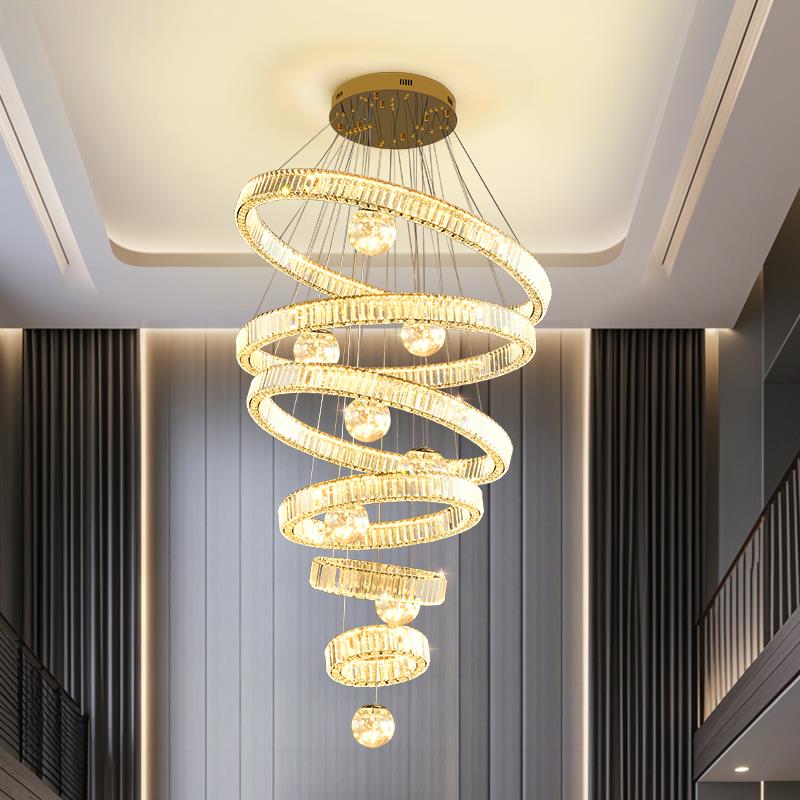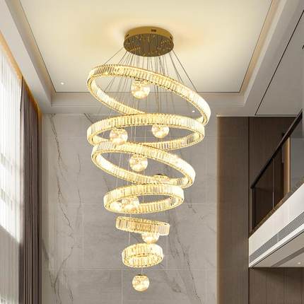 别墅挑空客厅吊灯轻奢现代复式楼水晶灯loft旋转楼梯吊灯2025新款