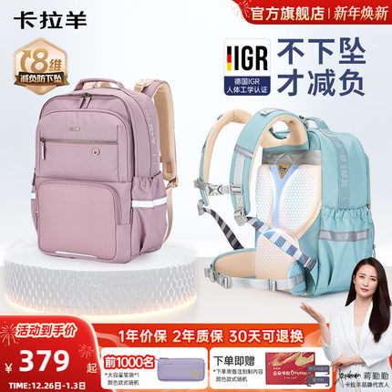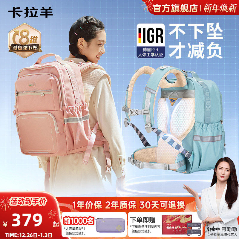卡拉羊中学生8维减负防下坠云朵书包ProMax女初中生护脊双肩包男