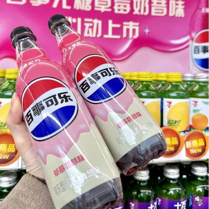 【新品上市】百事可乐草莓奶昔味可乐型汽水500ml瓶装无糖可乐