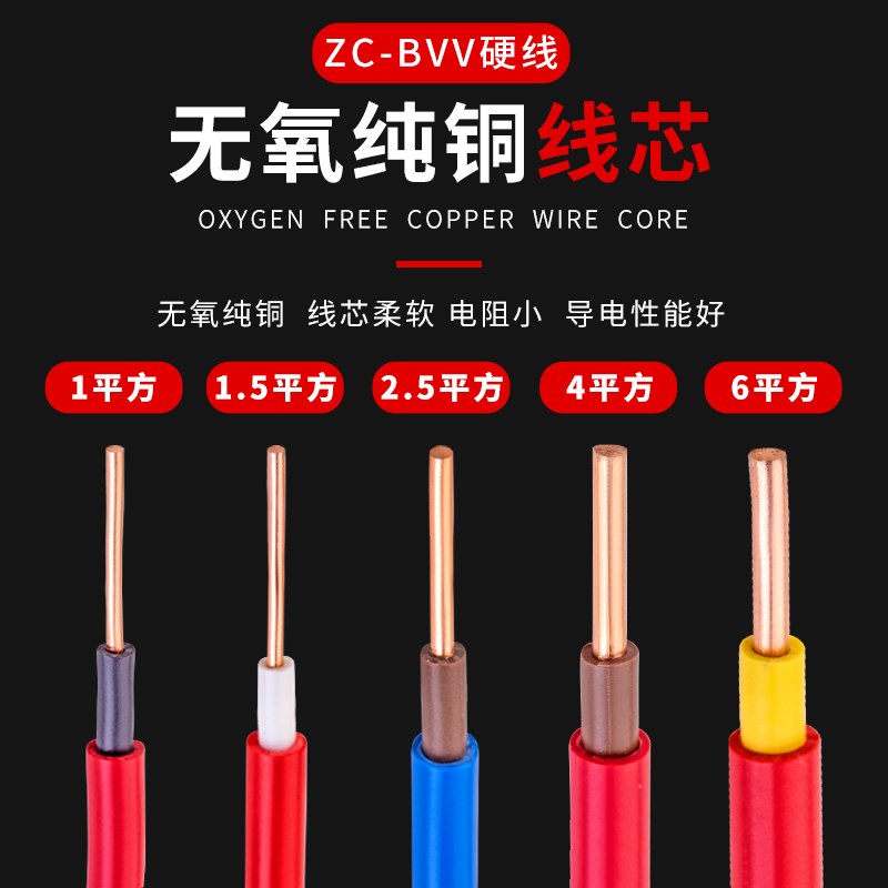 广东电缆厂电线BVV1.5 2.5 4 6平方国标双皮单股纯铜芯硬线家装