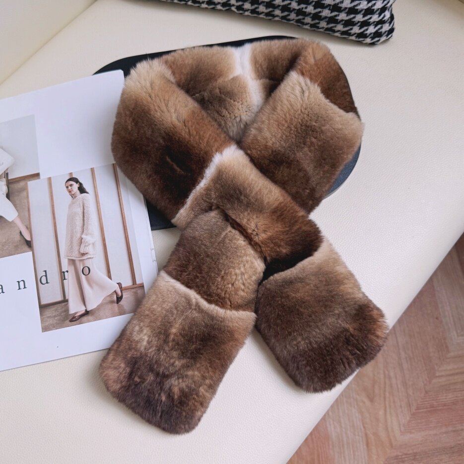 法产青紫蓝獭兔毛围巾女冬季保暖双面皮草渐变龙猫纹交叉气质围脖