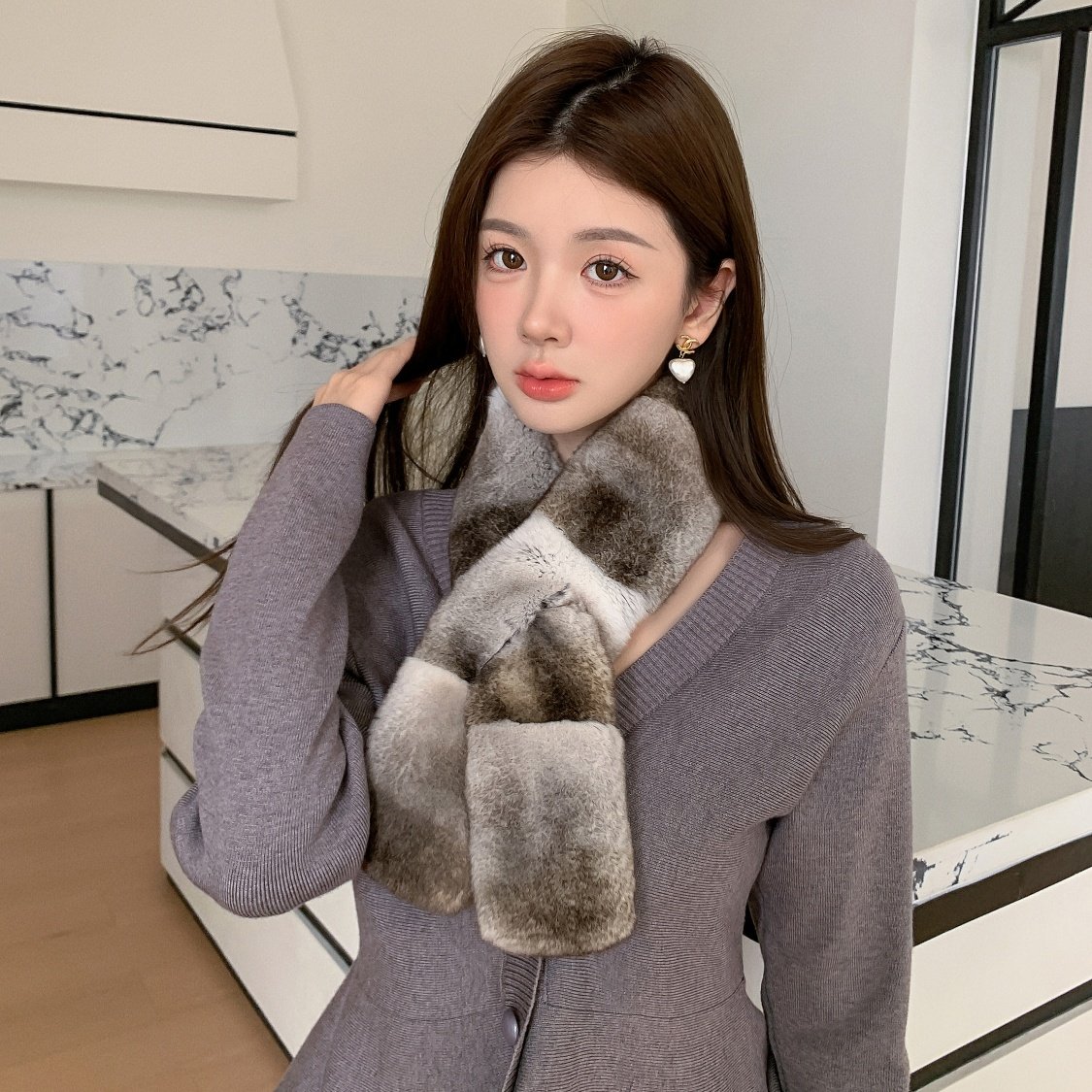 龙猫色青紫蓝本色獭兔毛双面围巾