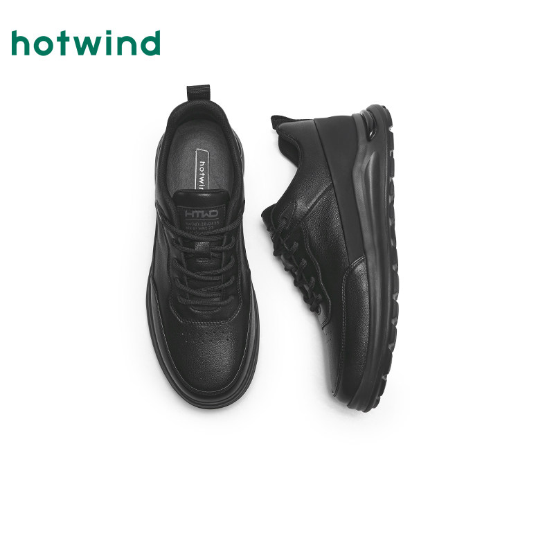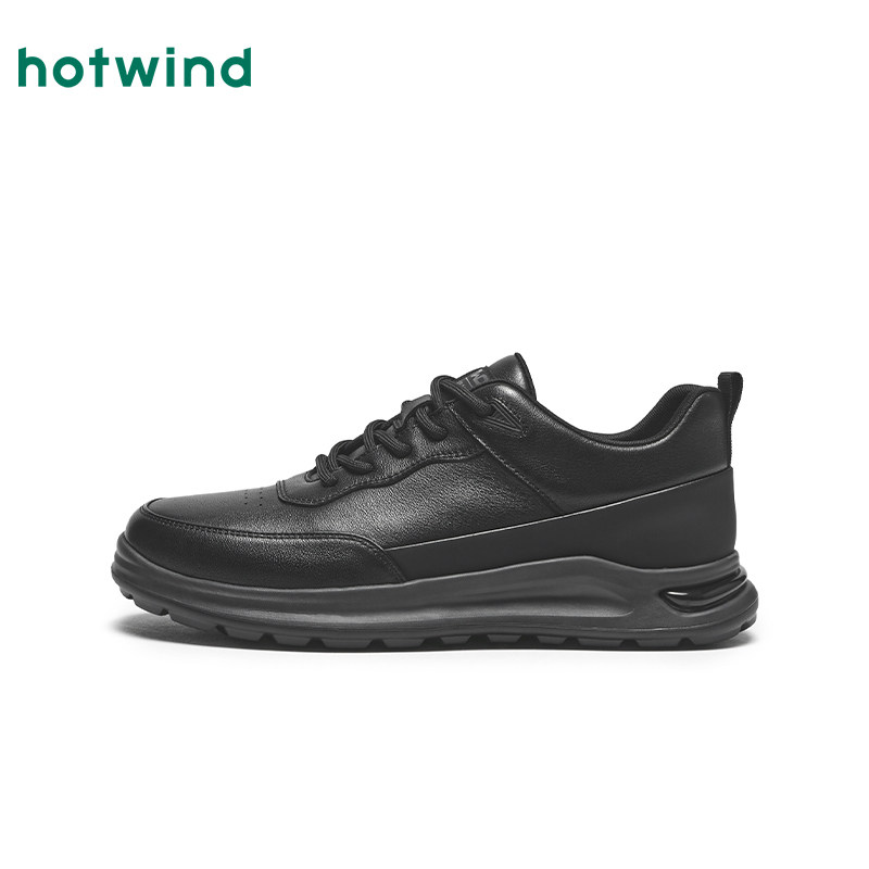 热风男鞋2025年秋季新款休闲皮鞋男士运动休闲鞋舒适黑色鞋子