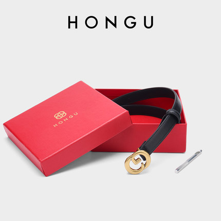 红谷女士皮带针扣高档牛皮金属纽扣礼盒装腰带百搭装饰裤带
