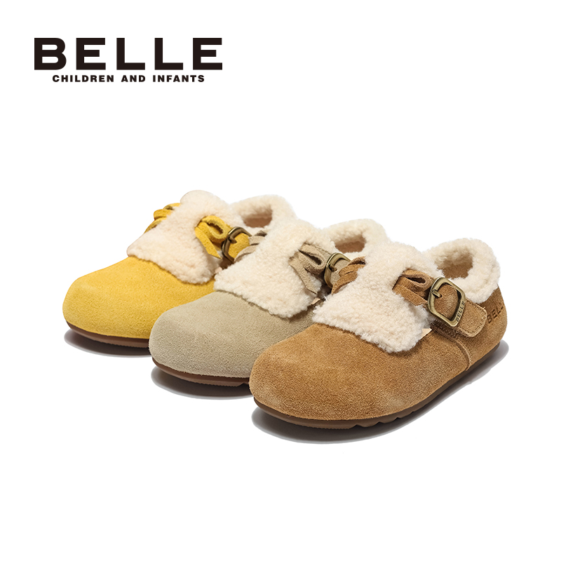 百丽童鞋女童勃肯鞋2025冬季新款儿童加绒保暖棉鞋宝宝皮鞋二棉鞋