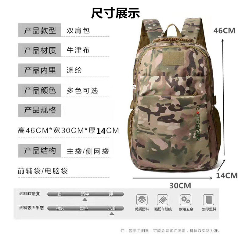 迷彩书包男大容量旅游背包中学生书包登山包军迷五星红旗双肩包