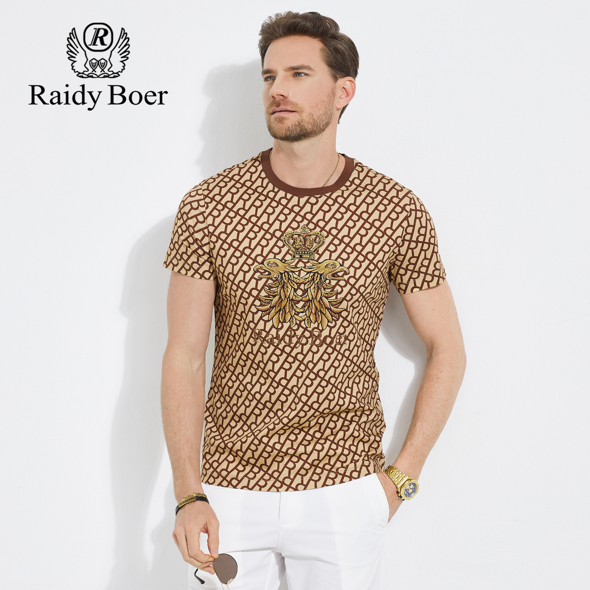 雷迪波尔男装纯棉短袖T恤夏季新品休闲圆领数码印花潮流上衣