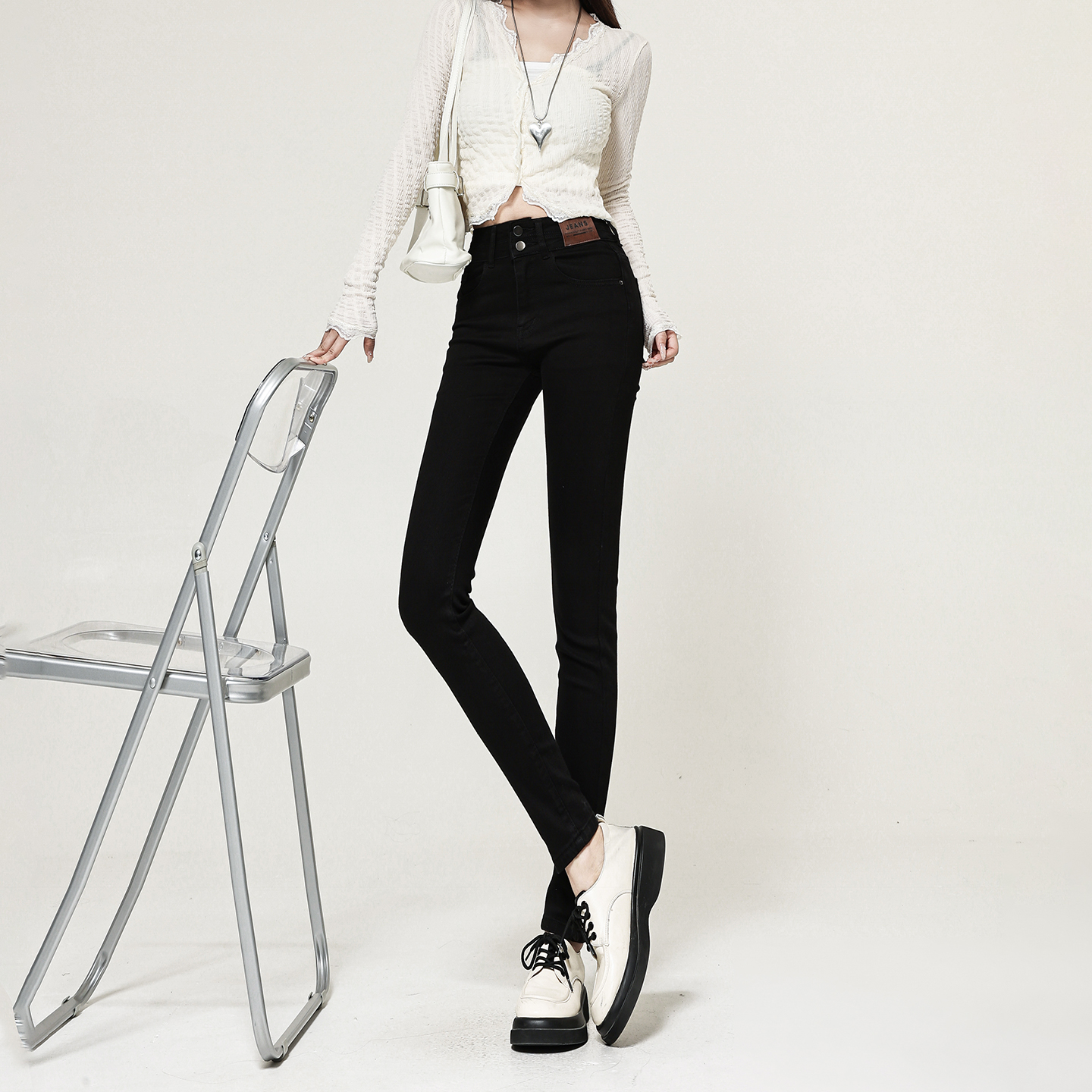 美式复古高腰紧身弹力小脚牛仔裤