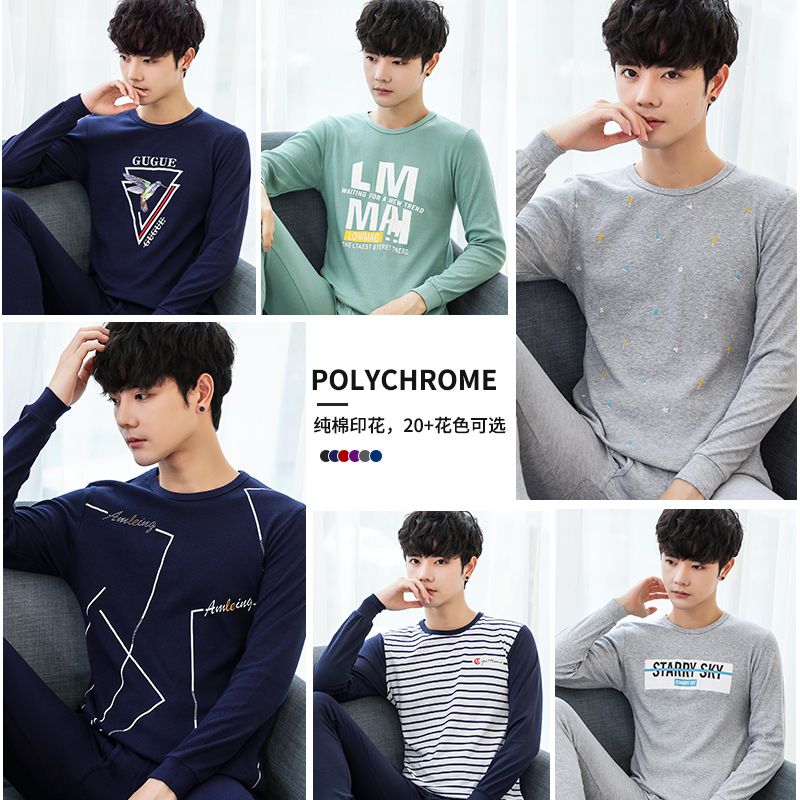 男士秋衣秋裤套装纯棉薄款青少年学生衣裤保暖内衣全棉棉毛衫冬季