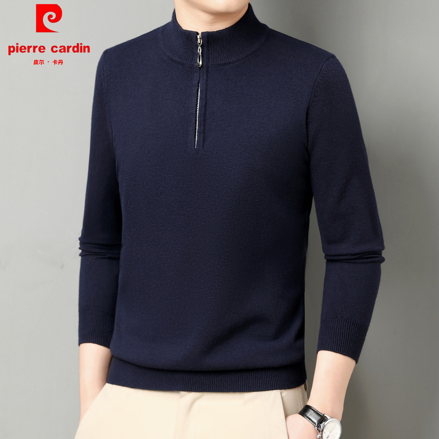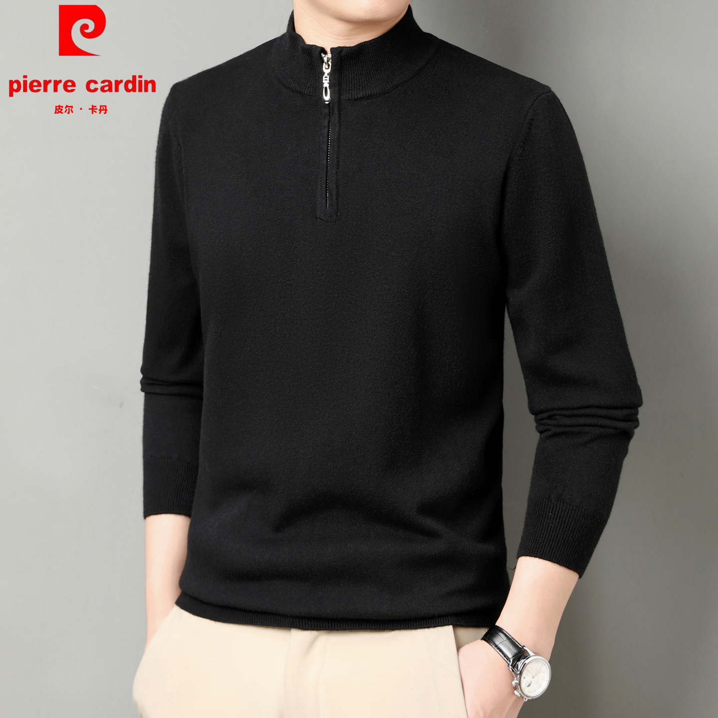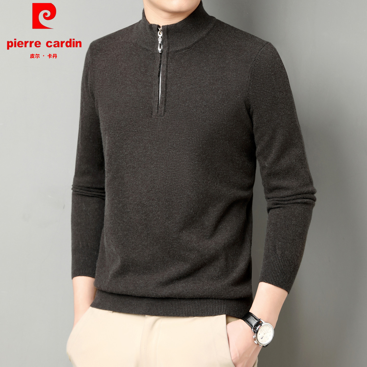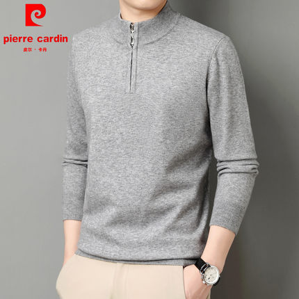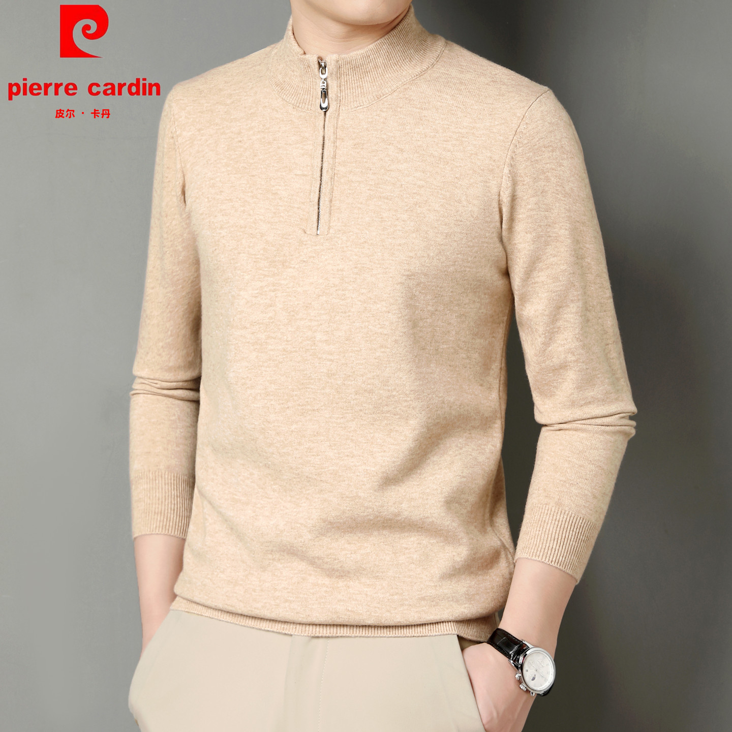皮尔卡丹正品羊毛衫男士半高拉链立领毛衣保暖加厚秋冬针织打底衫
