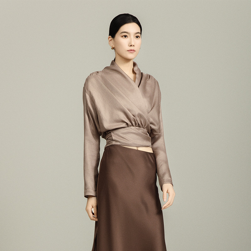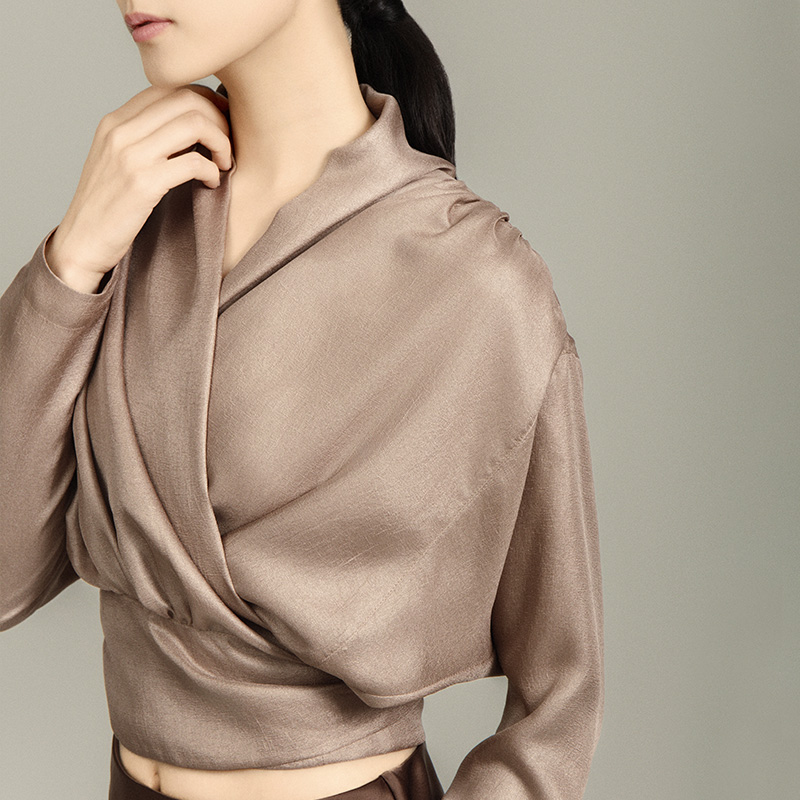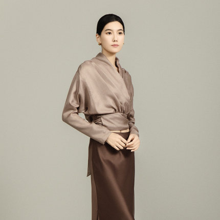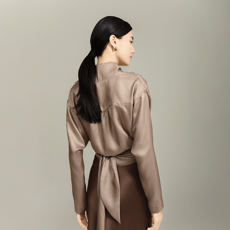 门里门外2025年新款咖色梭织高腰短款上衣百搭基础款设计感小众女