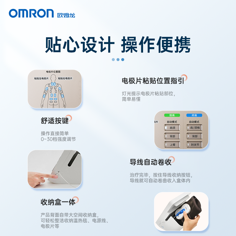 欧姆龙中频理疗仪脉冲电疗家用腰肩颈椎间盘突出按摩仪同款治疗