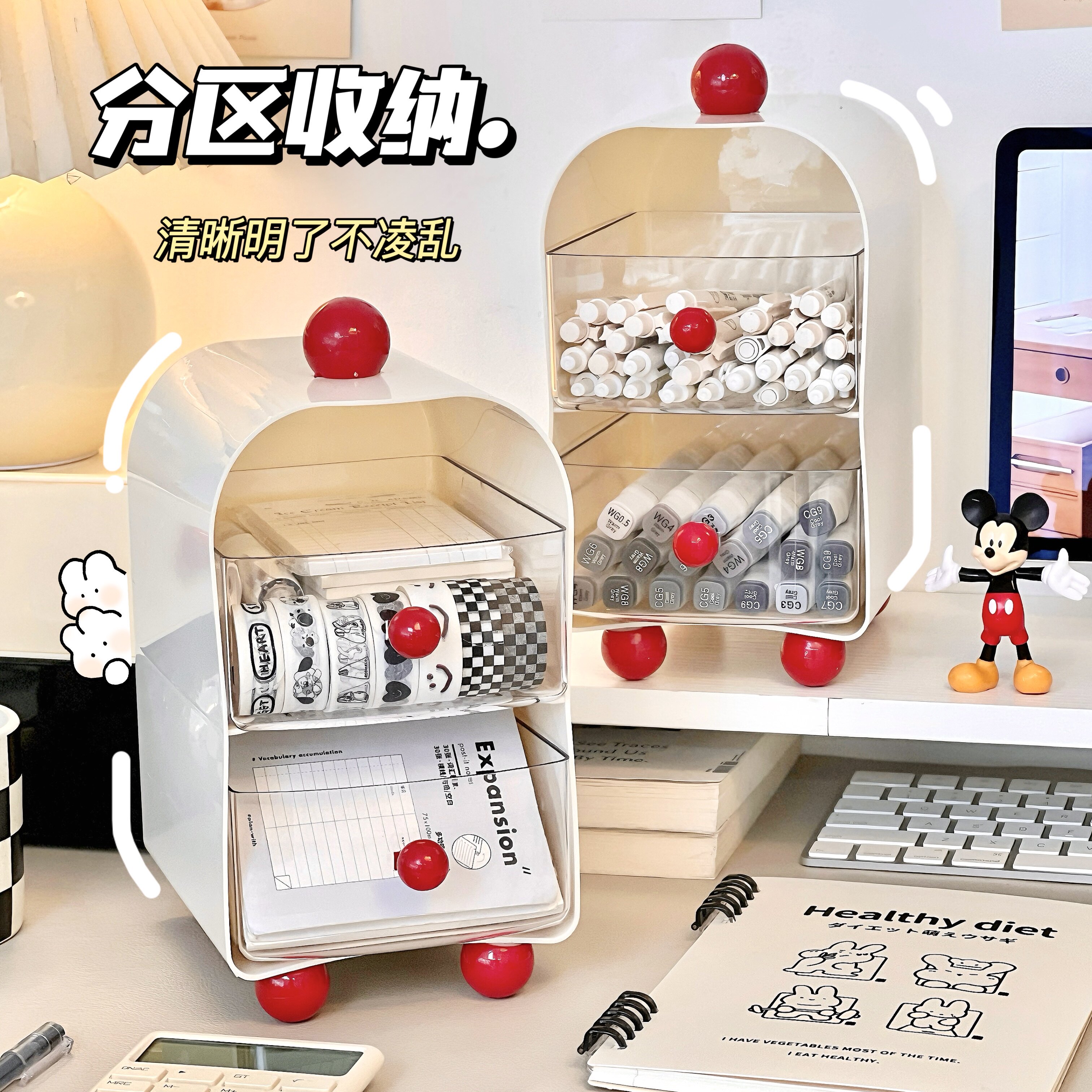 桌面收纳盒家用多层透明抽屉茶包整理盒子化妆品收纳清洁储物盒