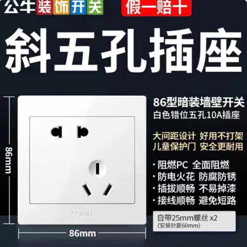 公牛G32开关插座白色面板墙壁电源暗装86型二三插头斜五孔三孔插