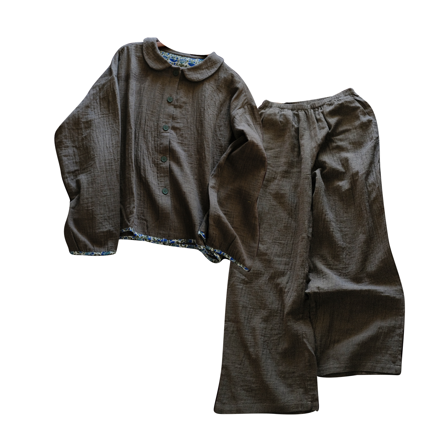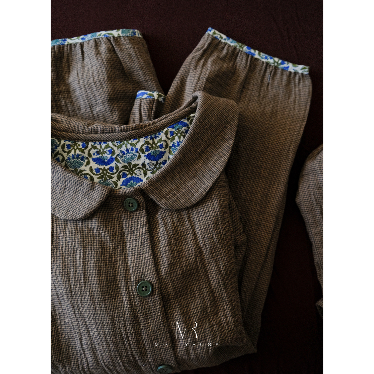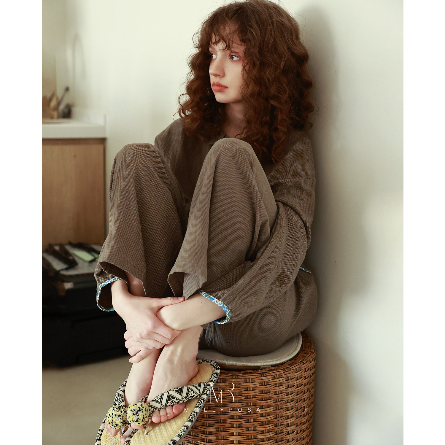 MollyRosa复古榛果|秋季睡衣女柔软纯棉长袖长裤翻领家居服套装新