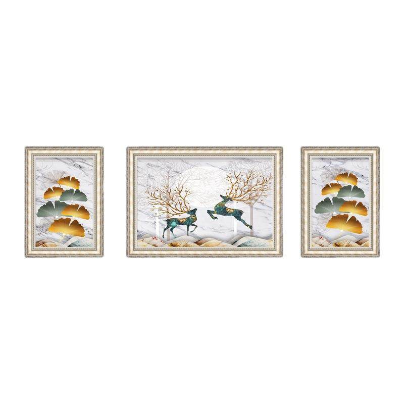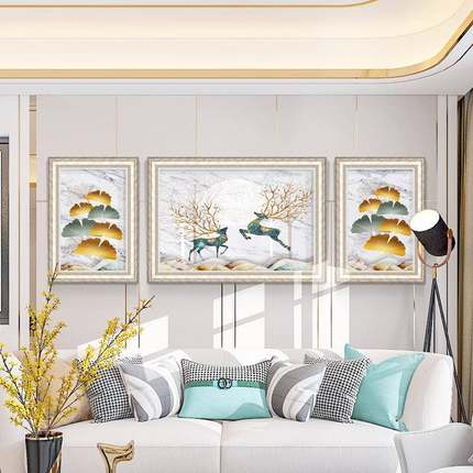 客厅沙发背景挂画简欧轻奢墙面组合画麋鹿装饰画家用欧式三联画