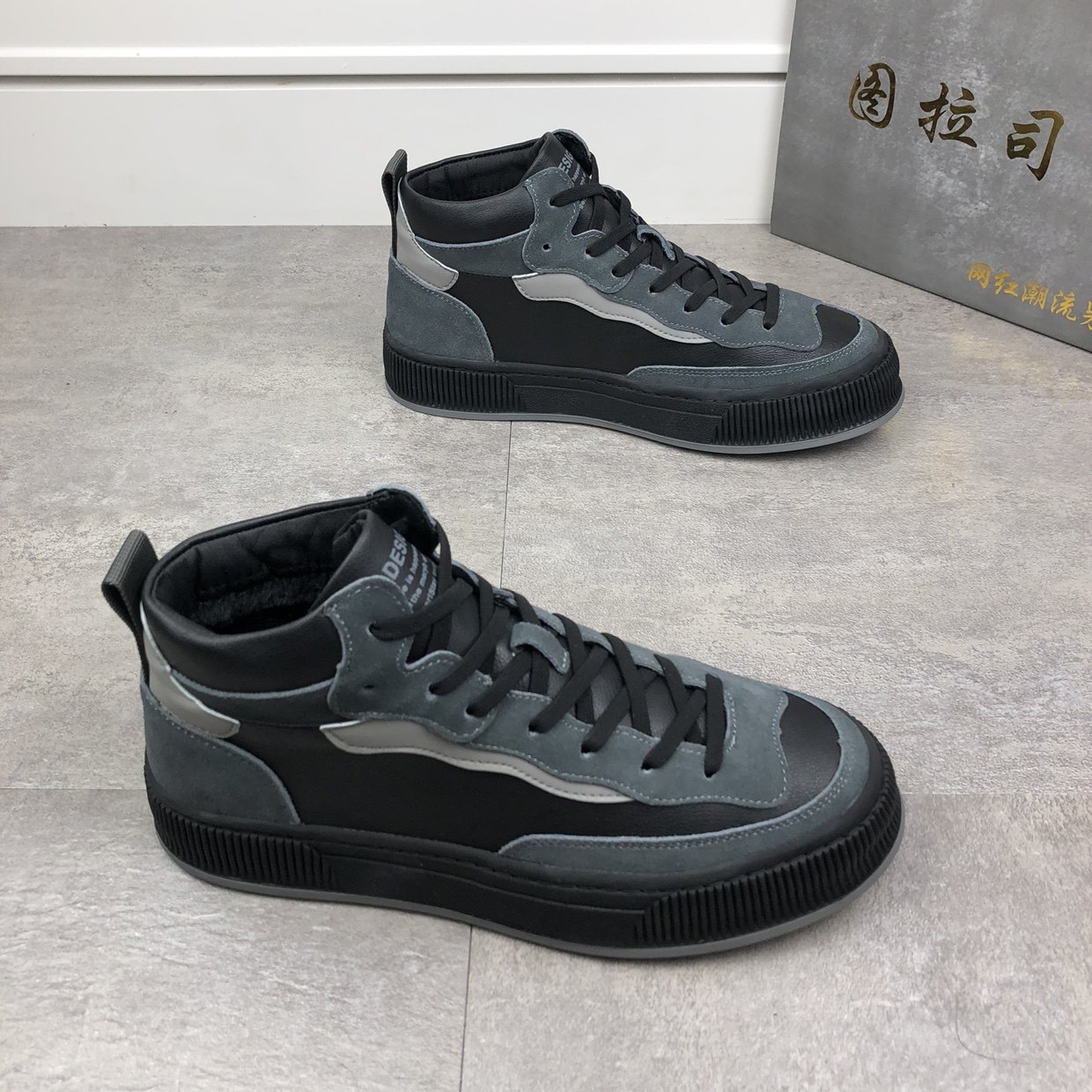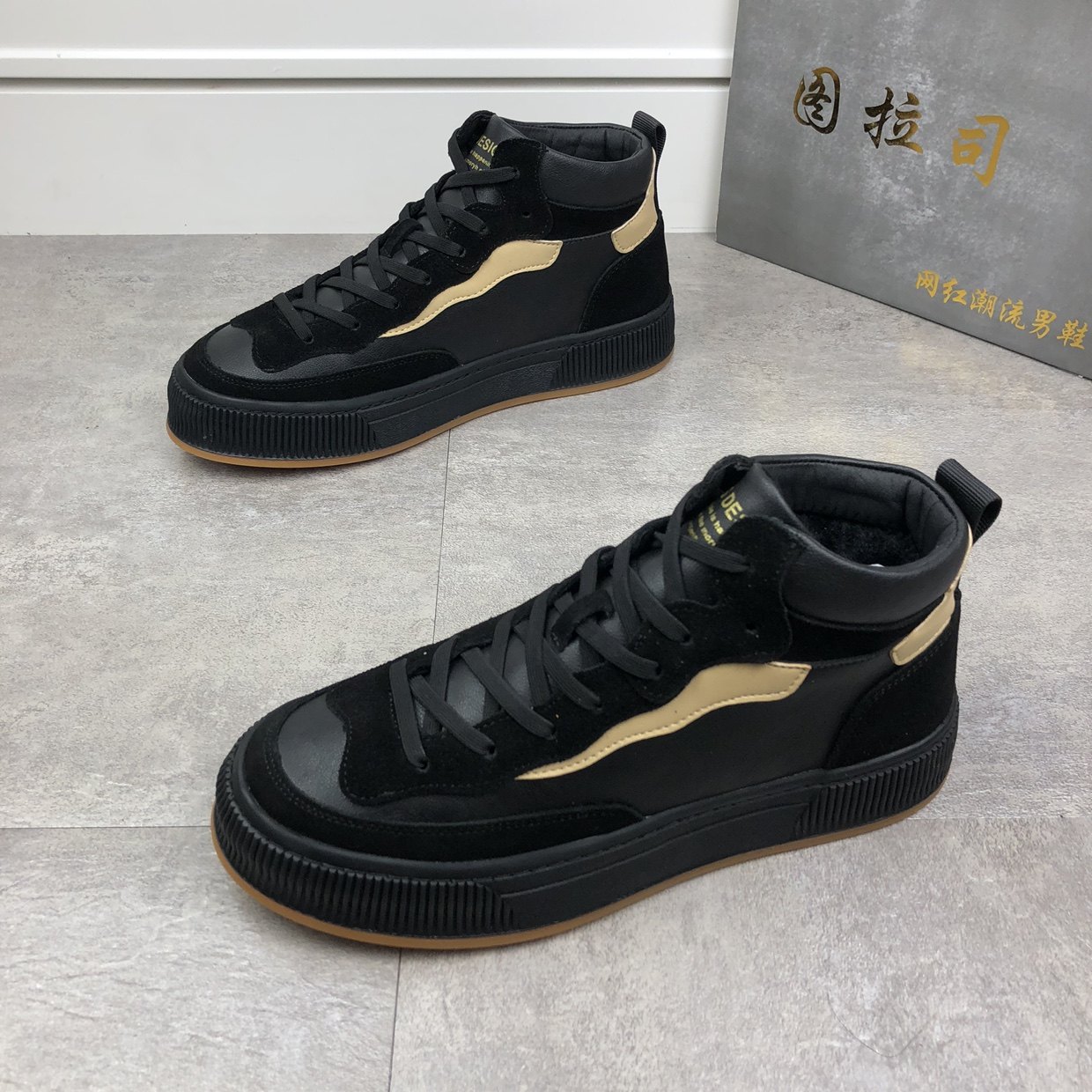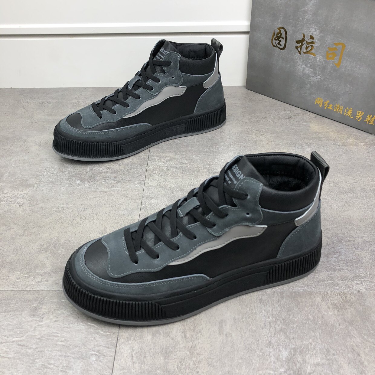 冬季新款高帮厚底加绒保暖棉休闲鞋韩版百搭增高板鞋网红潮流男鞋