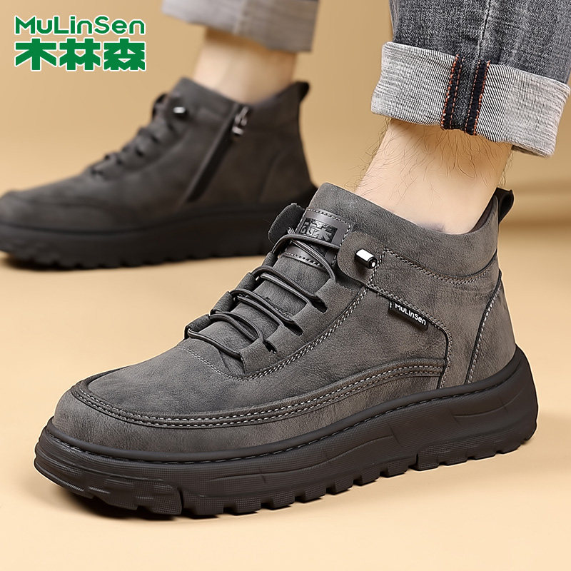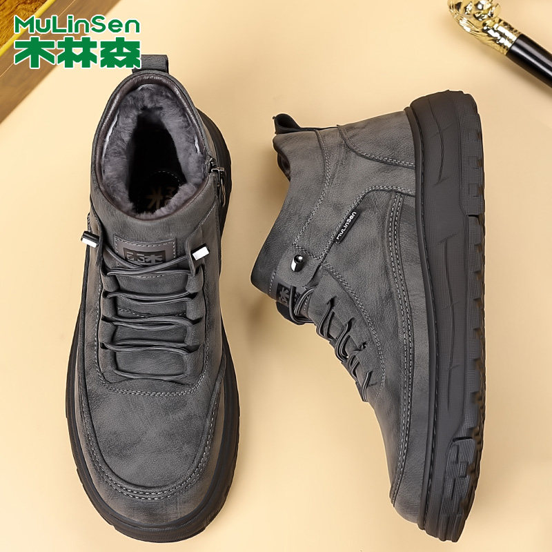 木林森木林森男鞋冬季男款加厚保暖棉鞋防滑厚底板鞋男士休闲鞋子