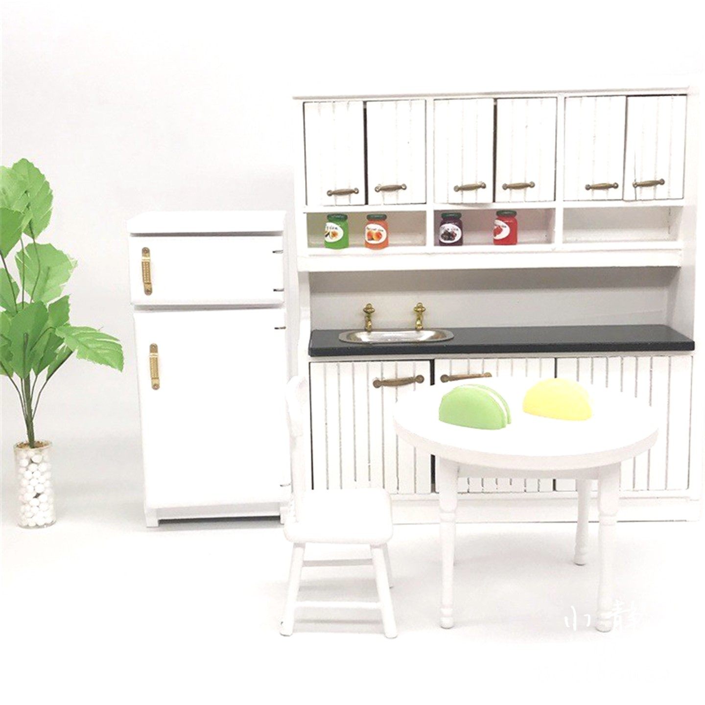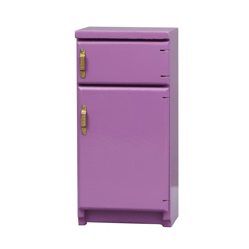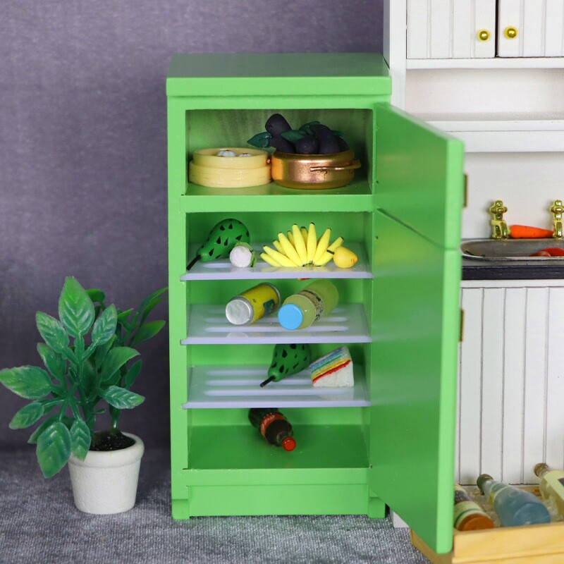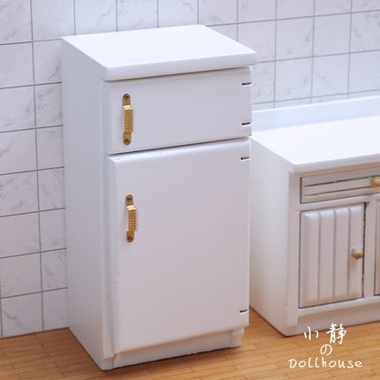 1:12小布娃娃屋迷你家具微缩模型厨房场景过家家儿童玩具木质冰箱