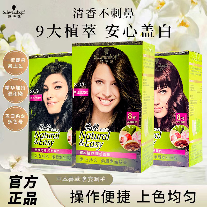 3盒 施华蔻染发膏怡然染发剂植物纯遮白发自然不伤发自己在家染膏