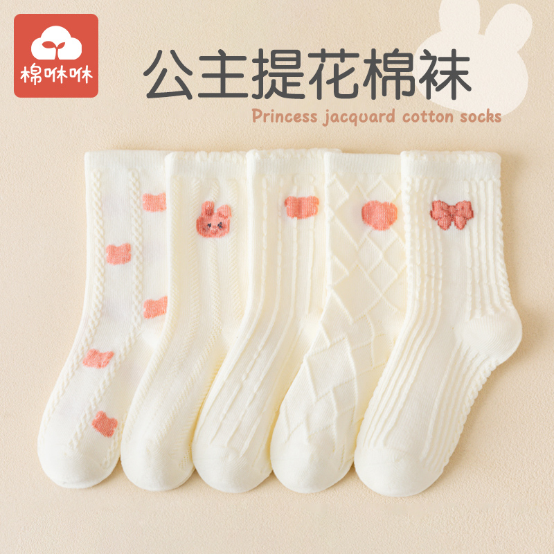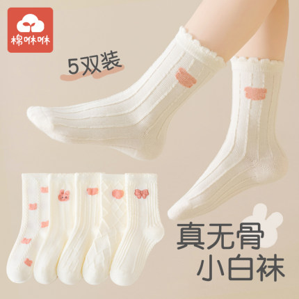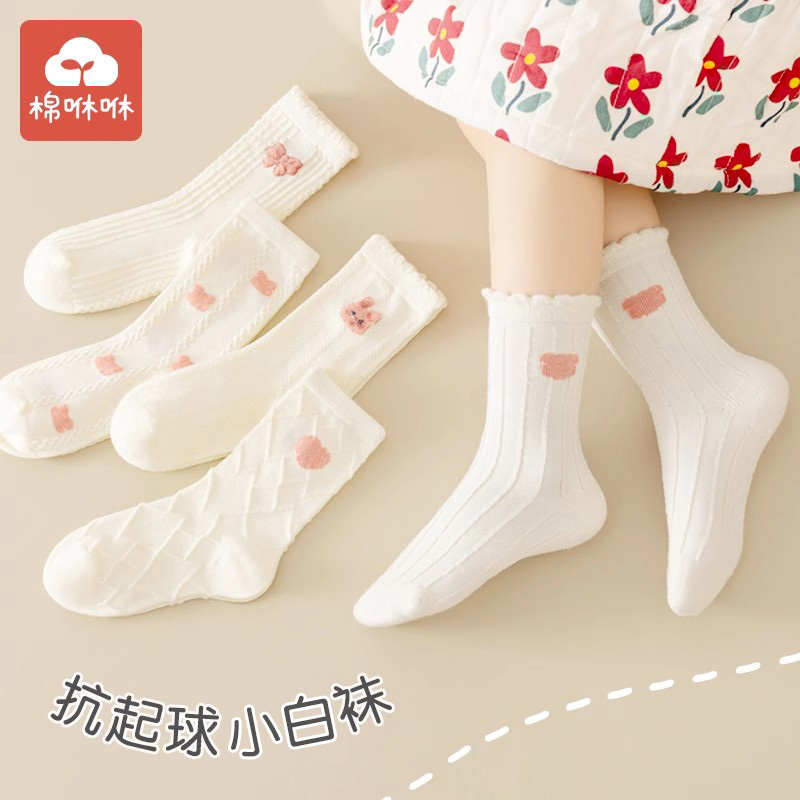 袜子女童春秋款棉袜A类中筒袜花边童袜宝宝白色公主儿童无骨棉袜