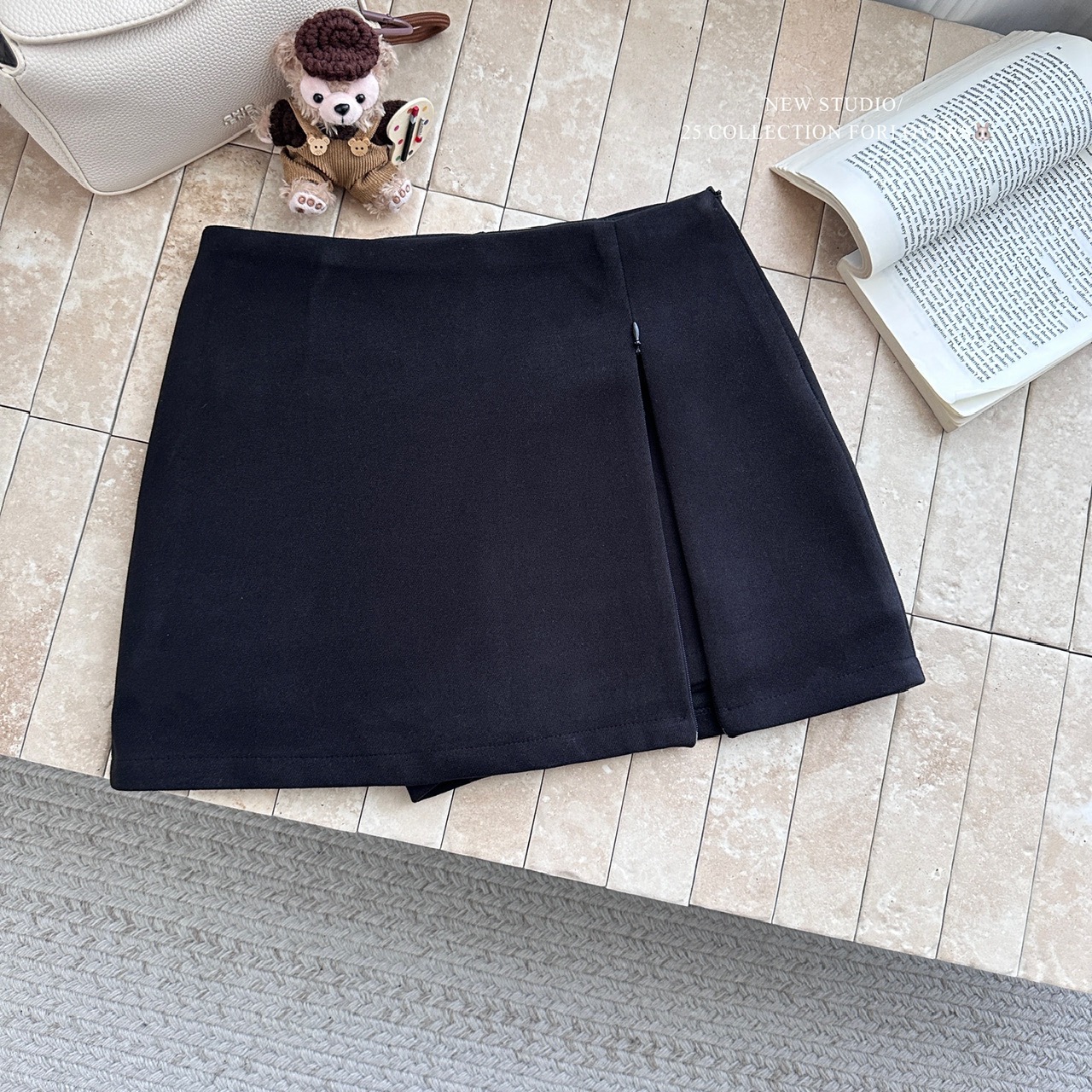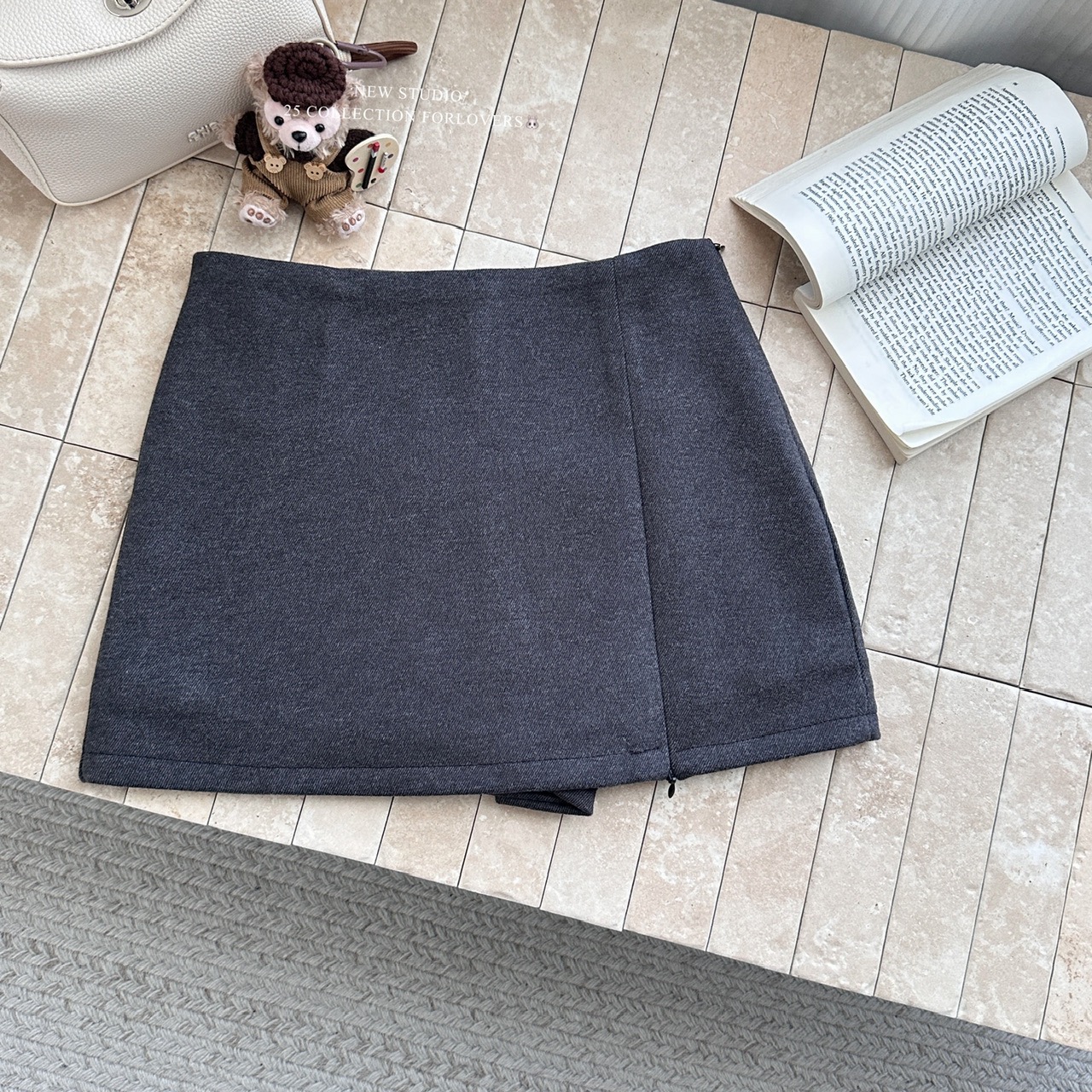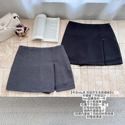 秋冬中古miu系双层侧拉链开叉毛呢半身裙女高腰包臀裙A字裙短裙裤