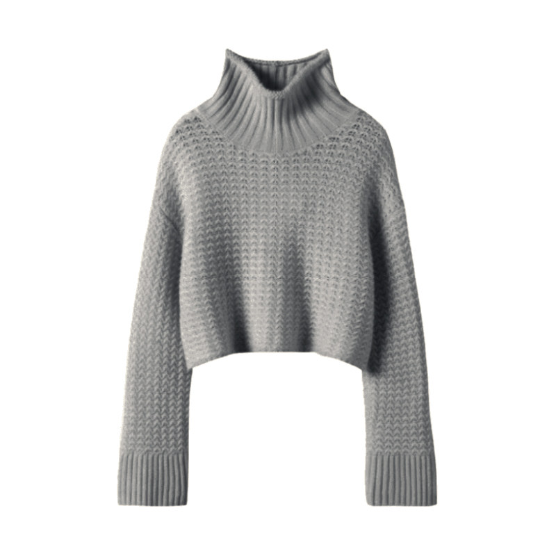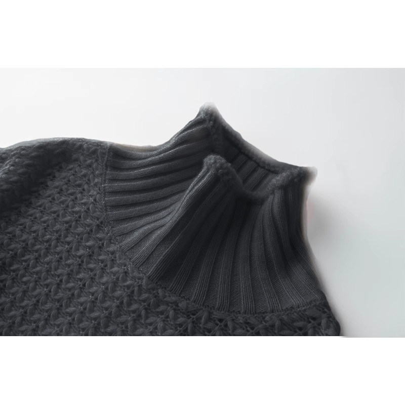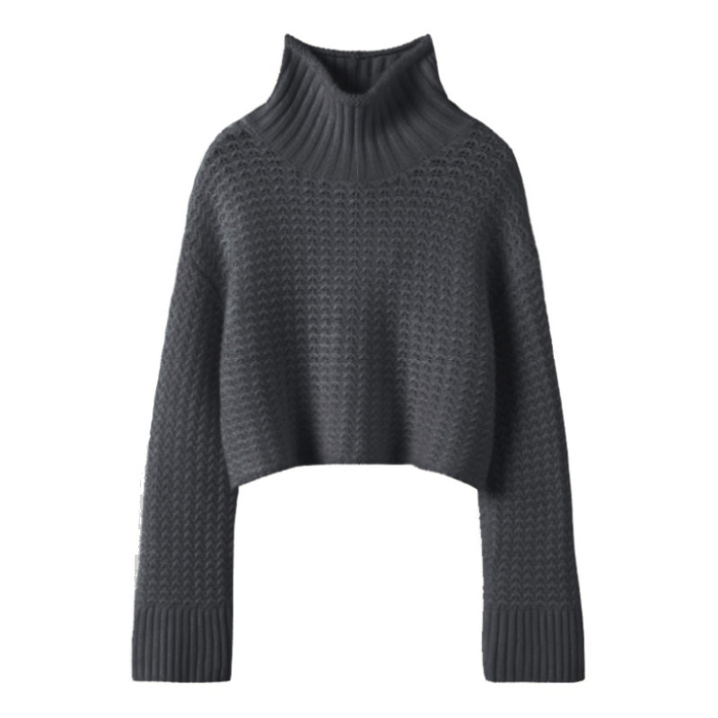 难得的好看!2025新款深灰色编镂空编织阔袖高领100%羊绒毛衣女