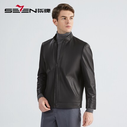 【羊皮革】柒牌清仓男装立领皮衣秋冬时尚潮流黑色皮夹克外套