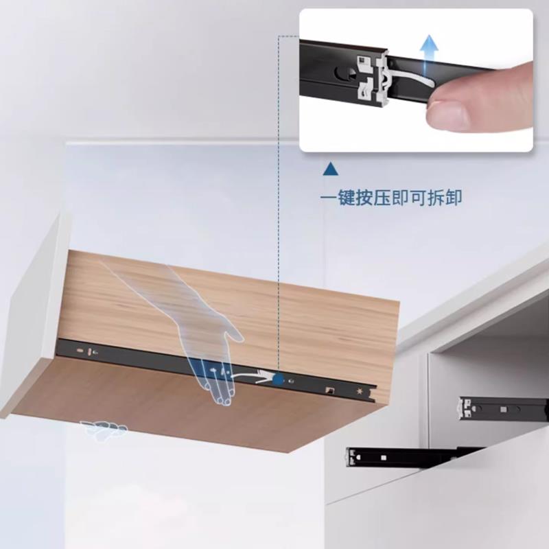 DTC东泰抽屉轨道导轨全拉出三节阻尼缓冲静音滑轨侧装3节滚珠滑道