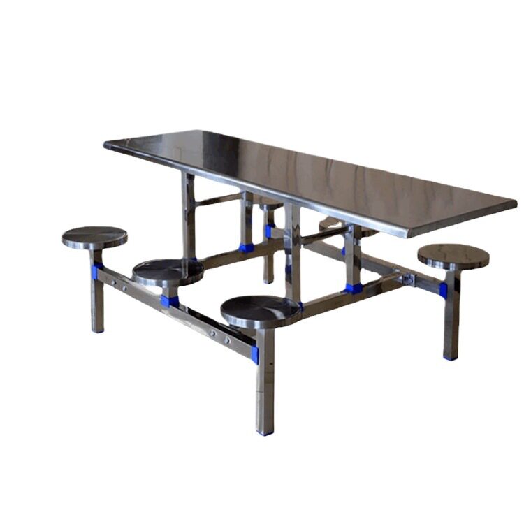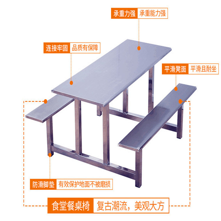 4人6人位食堂连体不锈钢餐桌椅学生员工小吃店玻璃钢快餐桌椅