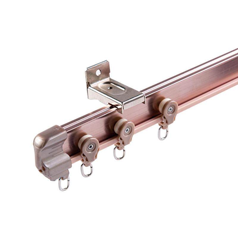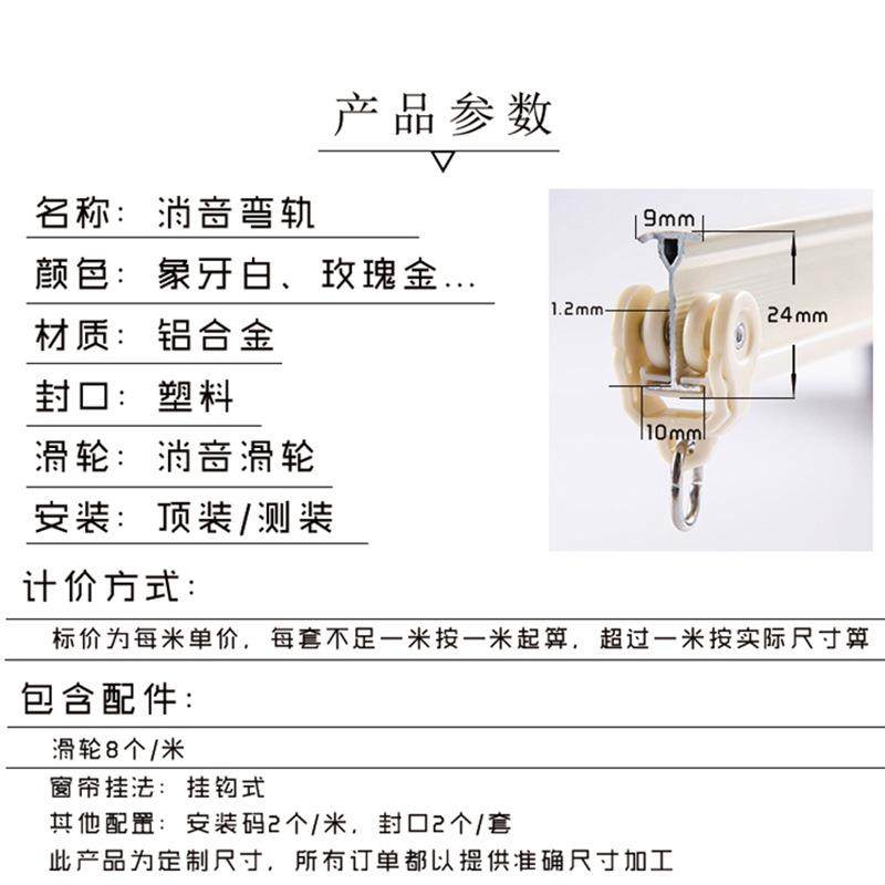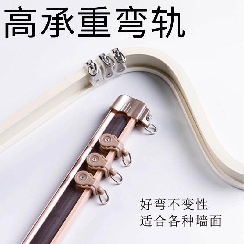 铝合金窗帘轨道弯轨LU型静音飘窗弯曲滑轮滑道顶装单双导轨窗帘杆