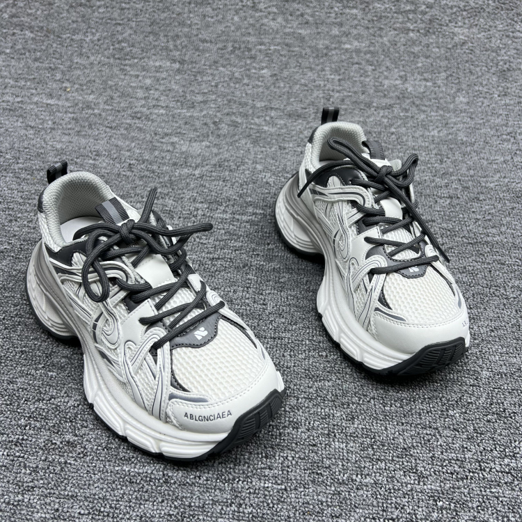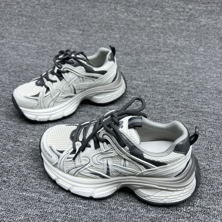欧洲站2025秋新款欧货真皮女鞋厚底系带网面轻便运动鞋休闲老爹鞋
