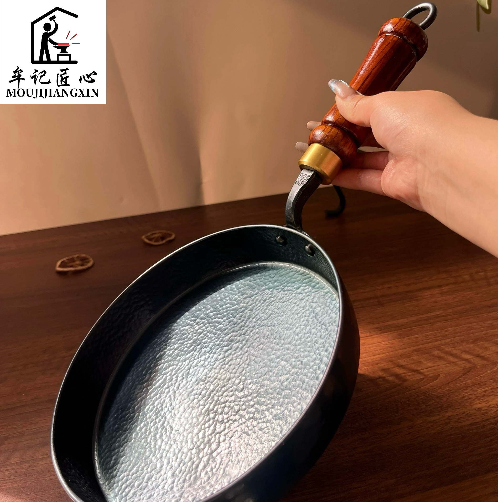 牟记匠心纯手工铁锅立面平底煎锅烙饼煎牛排家用无涂层煎锅