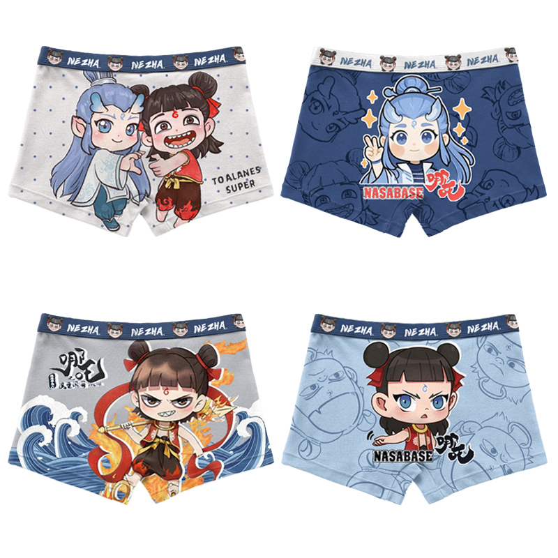 儿童内裤男童纯棉平角小男孩中大童四角夏季薄款哪吒敖丙100%短裤