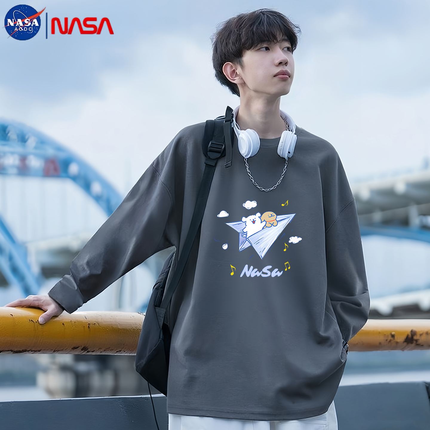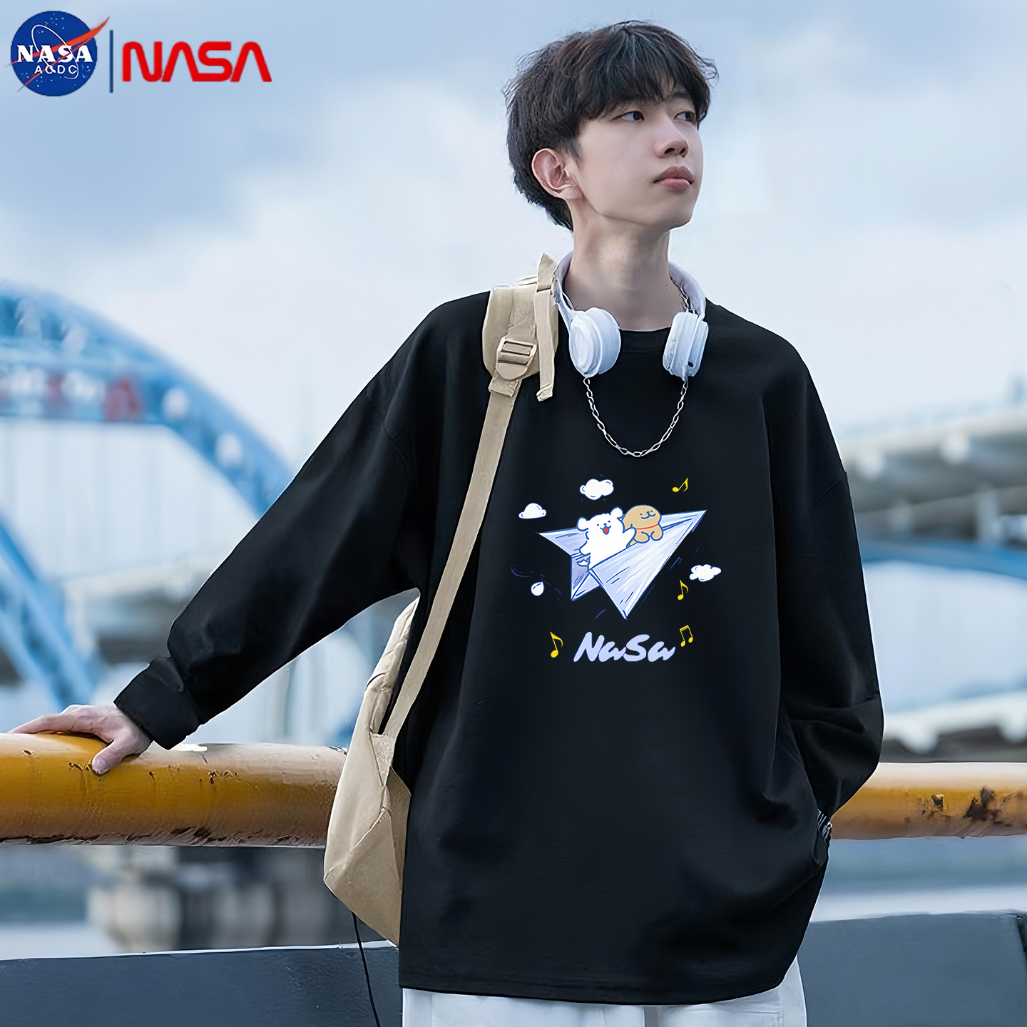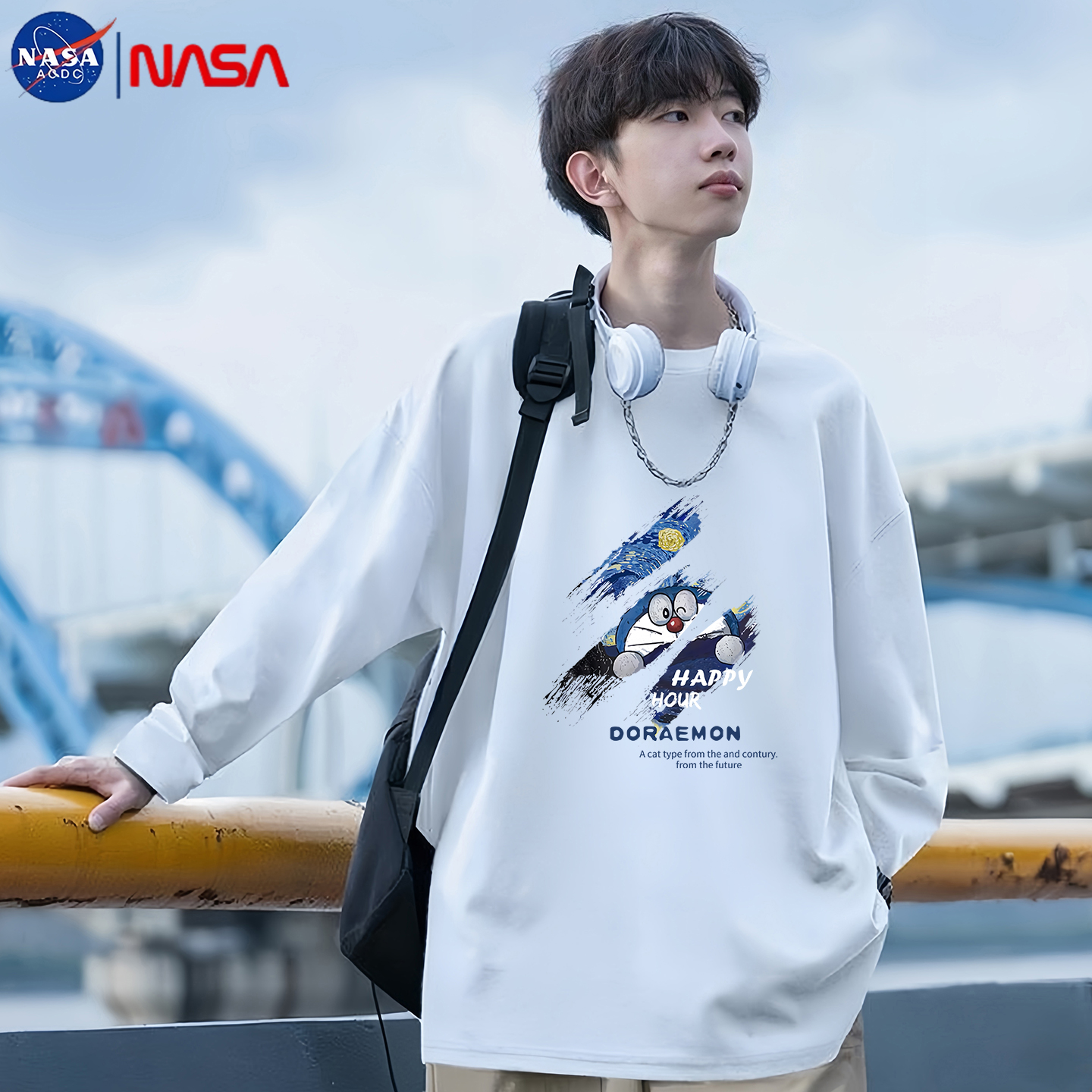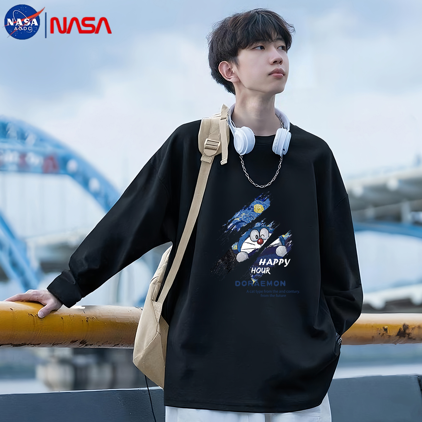 NASA联名长袖纯棉t恤男士春秋2025新款宽松叮当猫青少年男生内搭T